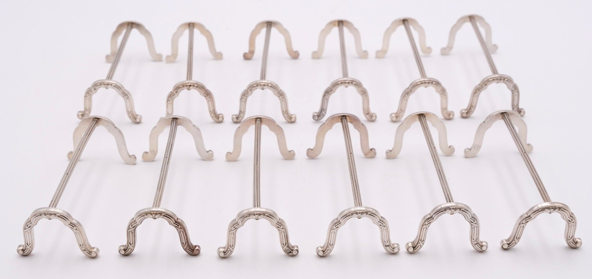 Suite of 12 silver knife-holders with ribboned rushes Hallma…