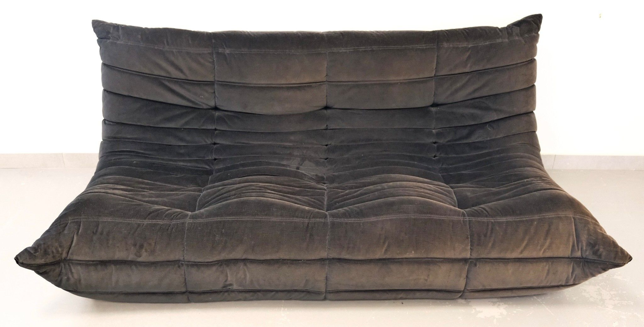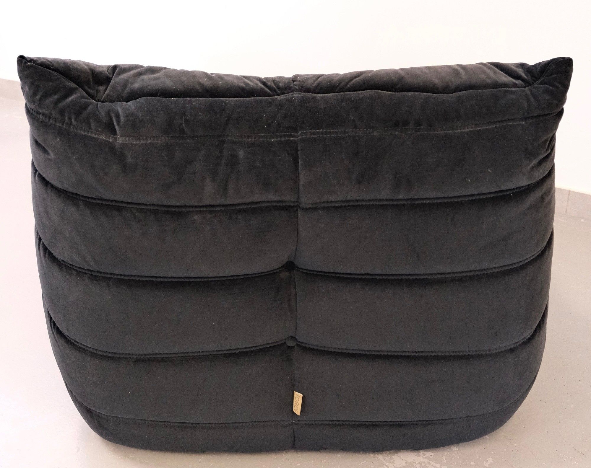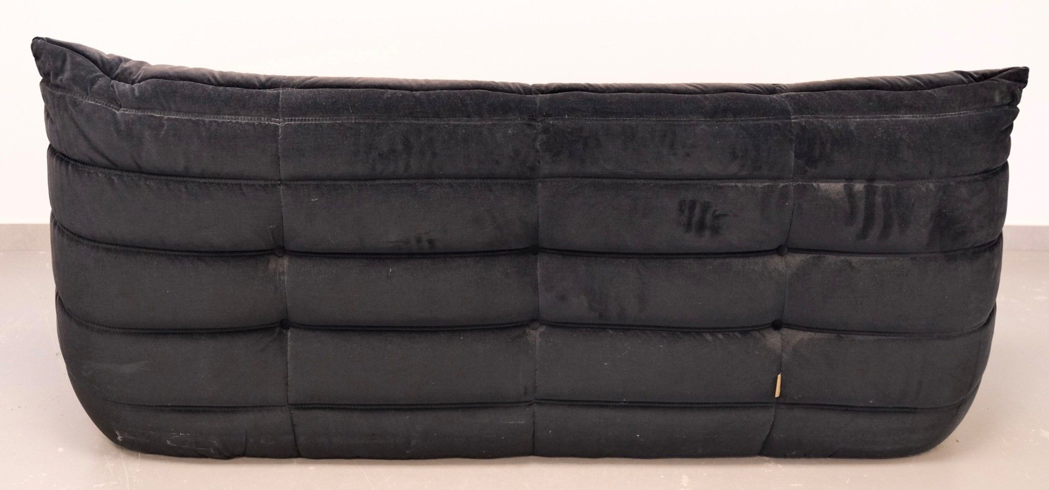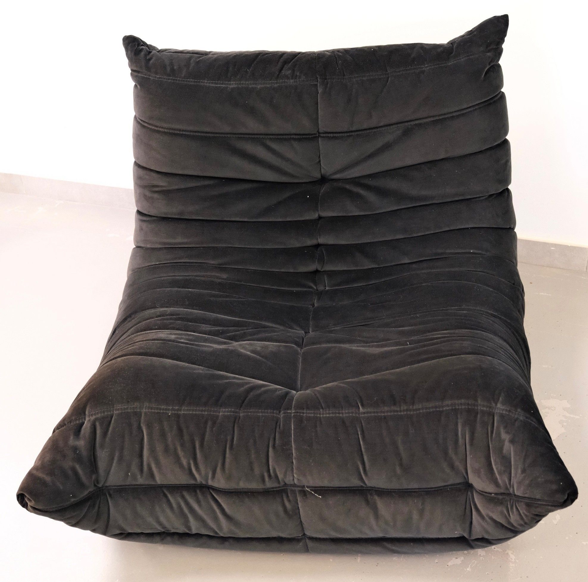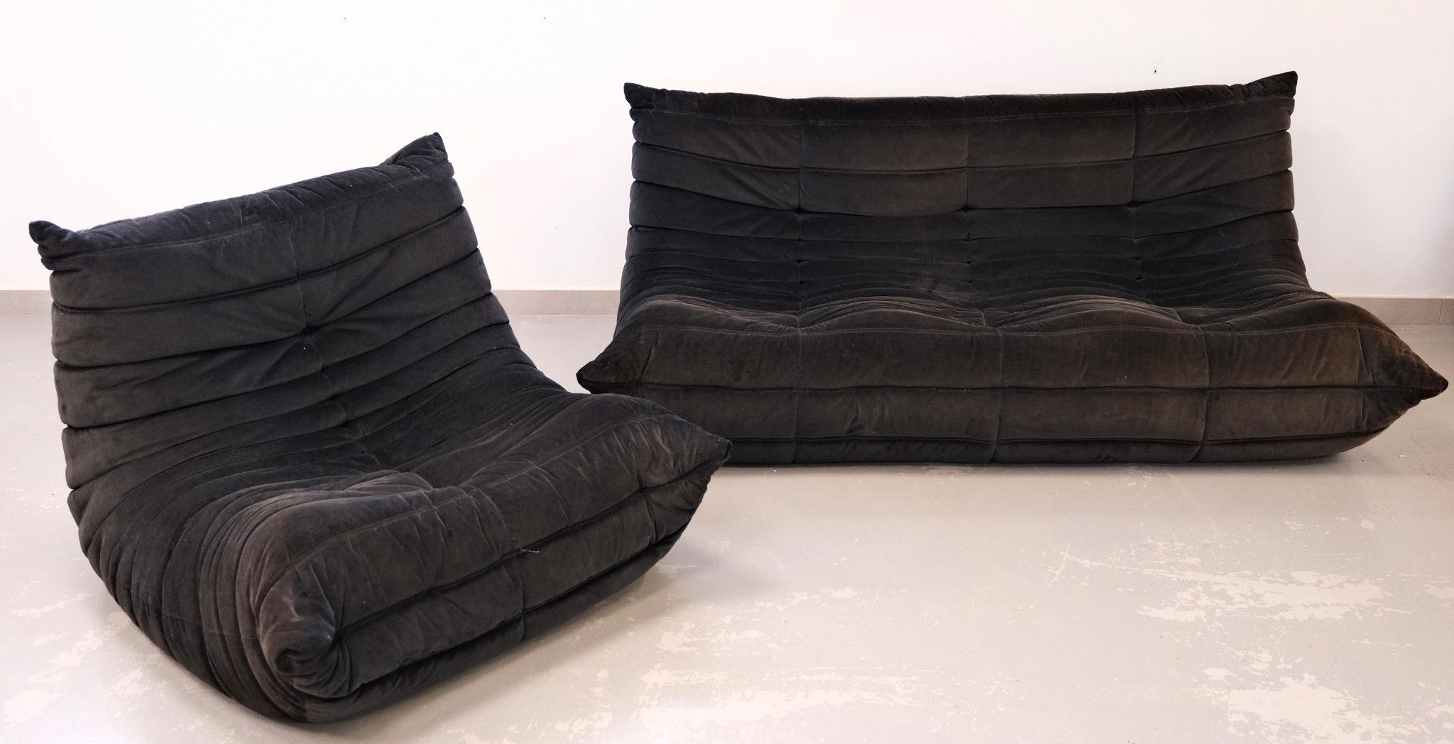 Three-seater sofa, model TOGO, in black velvet with armchair.