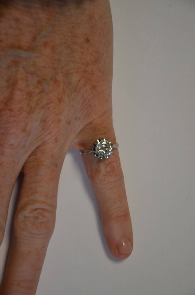 Solitaire ring in platinum set with a 1 ct /1.50 ct old-cut diamond. Approx. 3.6 g gross. T. 52-53. (Inclusions visible to the naked eye).