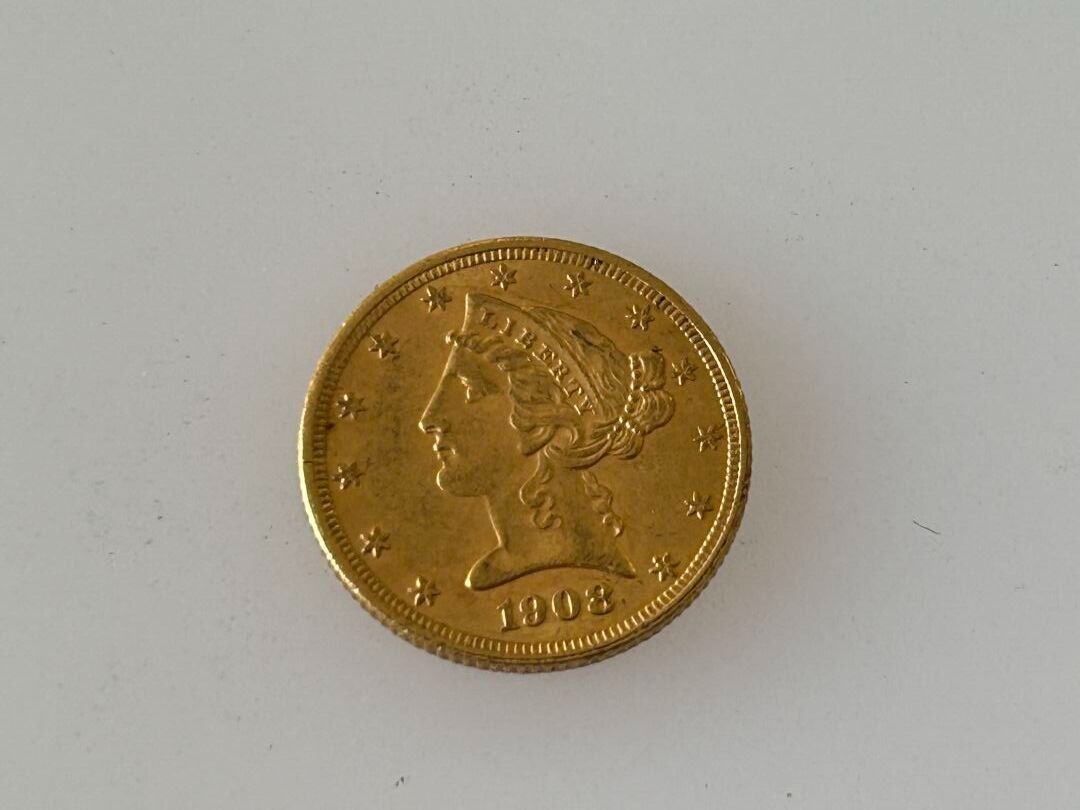 * USA, 1 $5 gold coin "Coronet head - Eagle", 1908. P. 8.36 g