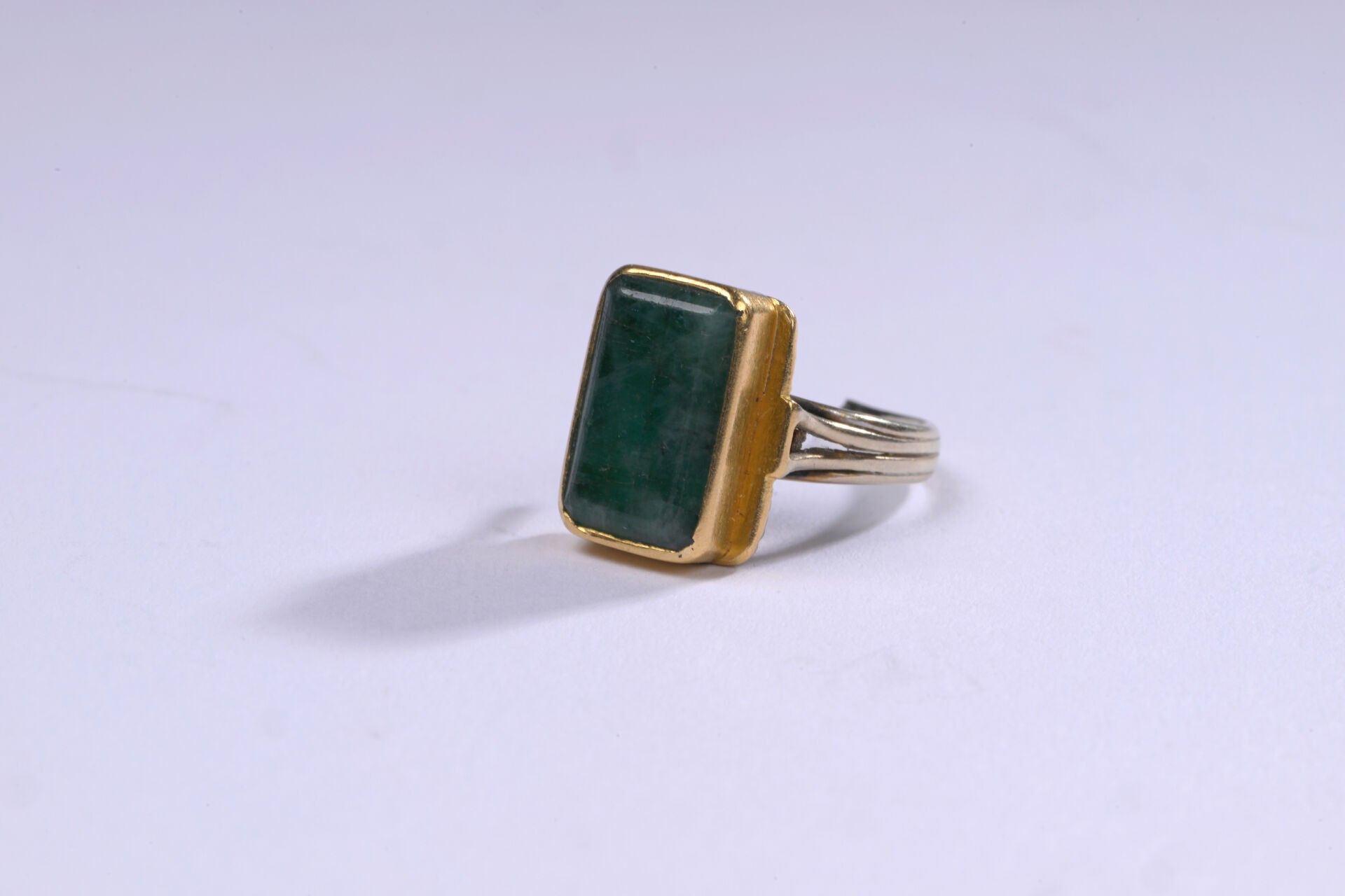 Accidental ring in two-tone 750 ‰ gold, (part of the ring is missing) set with an emerald root plaque , gross weight 5.33 g