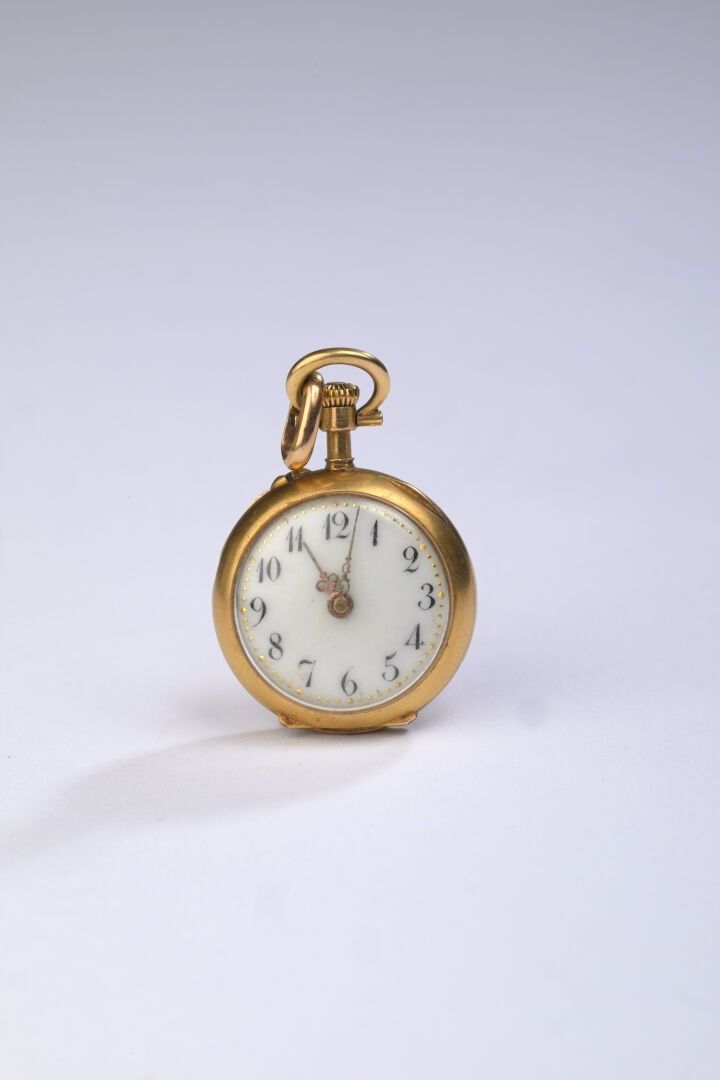Yellow gold 750 ‰ collar watch, mechanical movement, double …