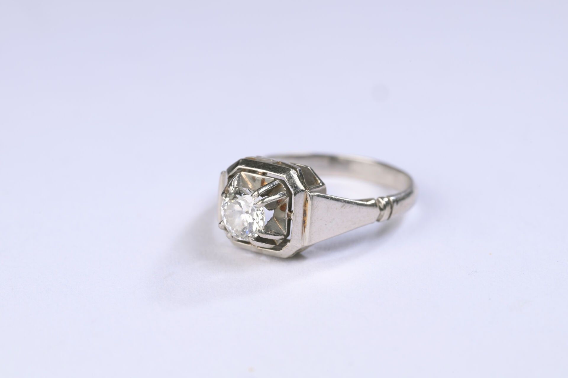 Ring in white gold 750 ‰ set with a brilliant cut half-cut diamond weighing an estimated 0.50 ct, finger size 53, weight 5 g