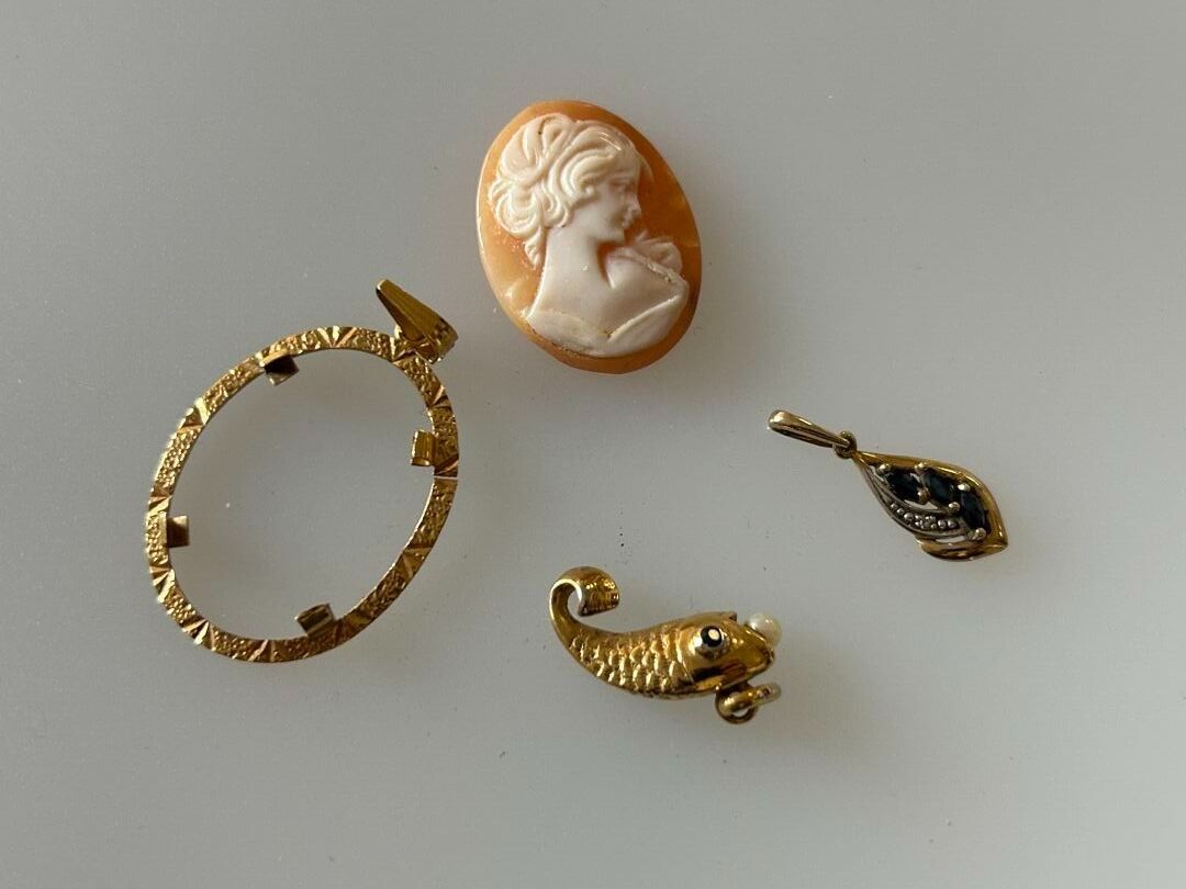 Two pendants, one fish in 575 thousandths gold and one penda…