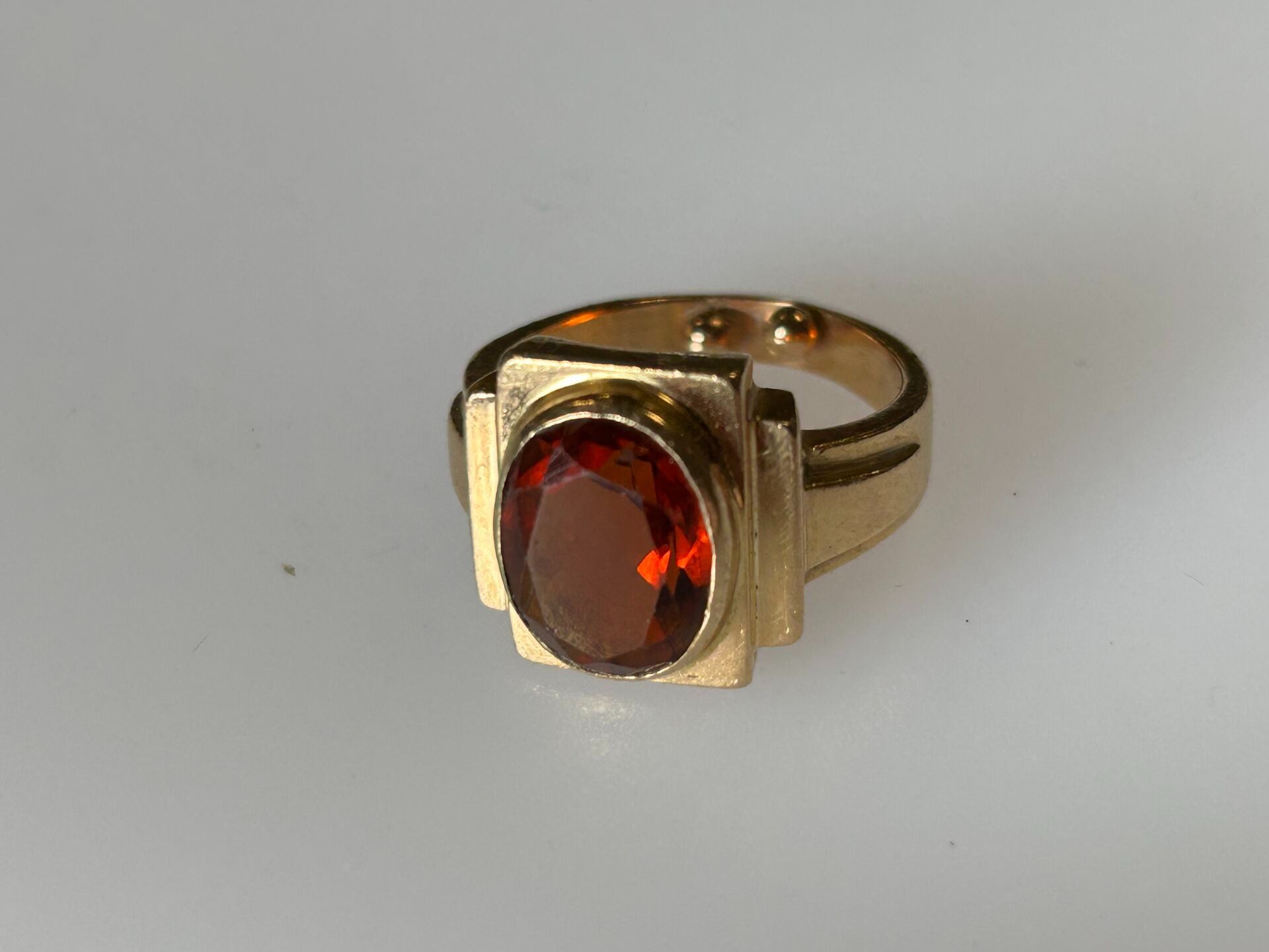 * 750 thousandths gold ring set with a red stone. PB. 12,42 g