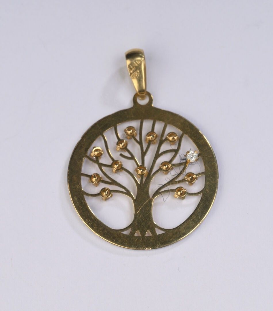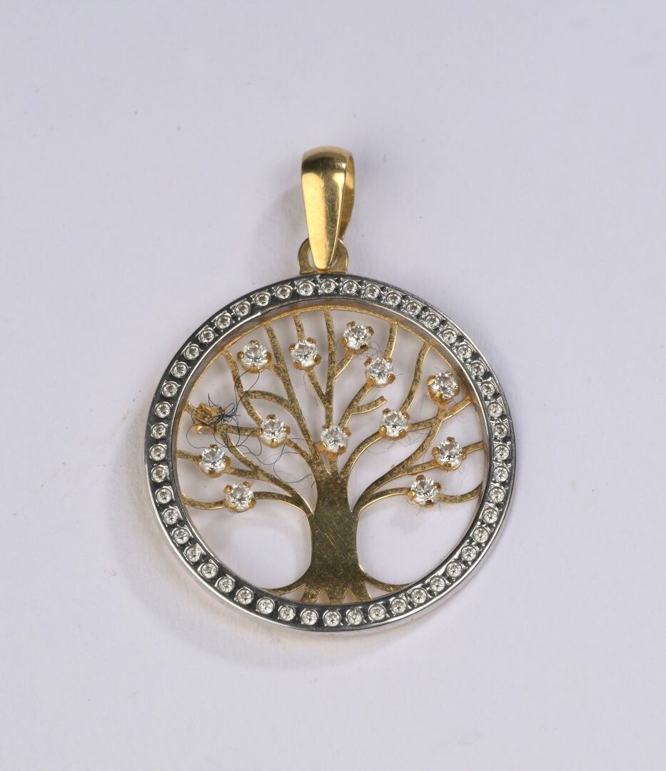 Tree in a circle" pendant in two-tone 750 ‰ gold and white stones, weight 0.9 g
