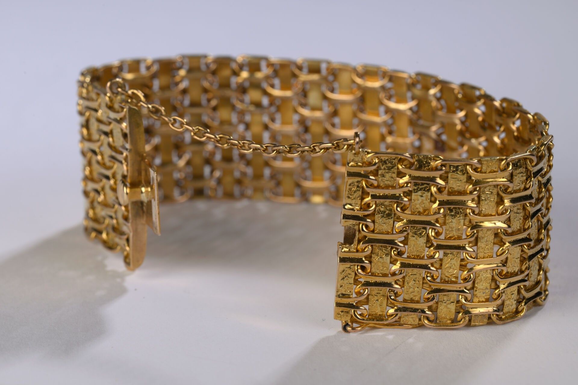 Premium Woven gold cuff bracelet, yellow gold 750 ‰, width, 2.8 cm, …