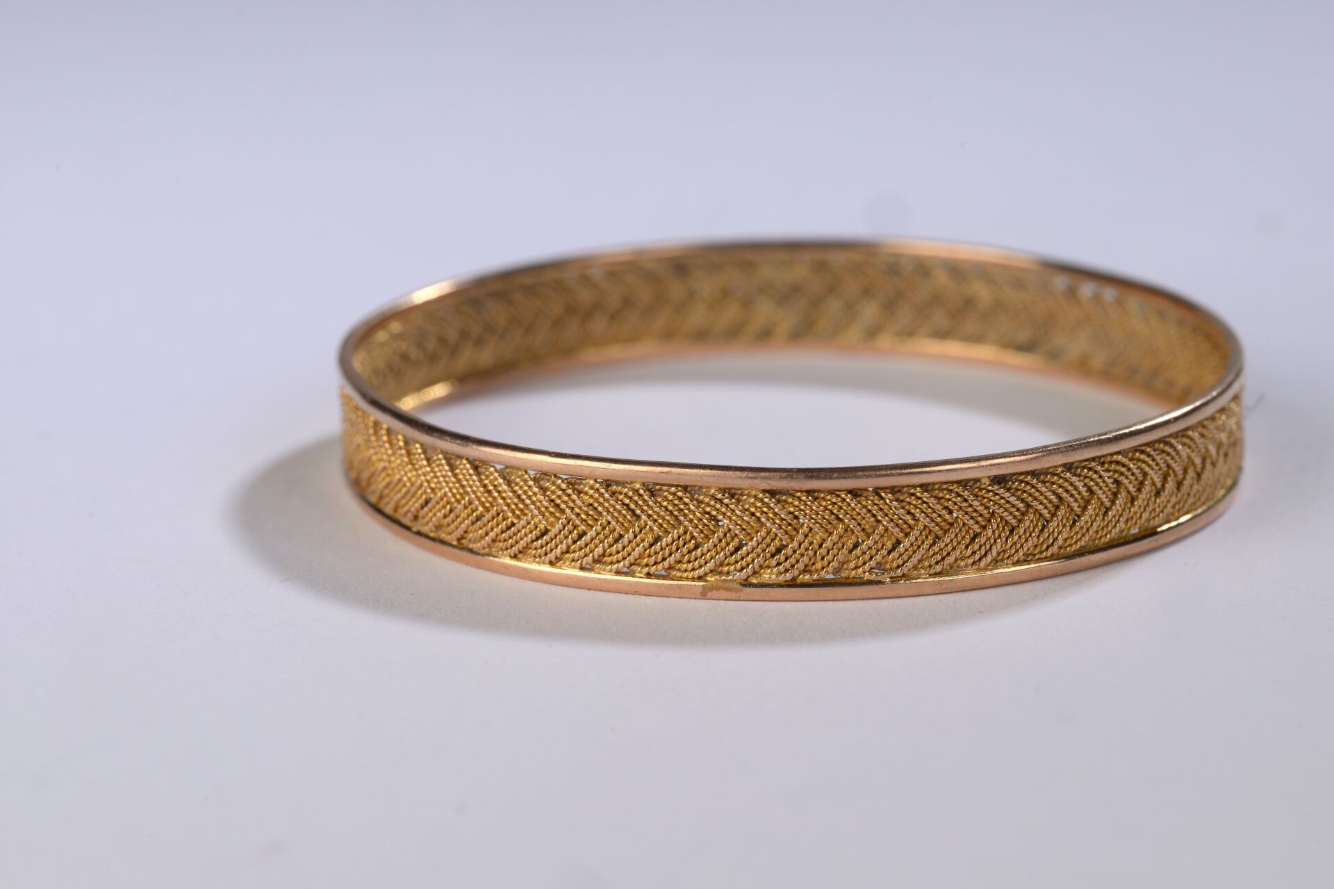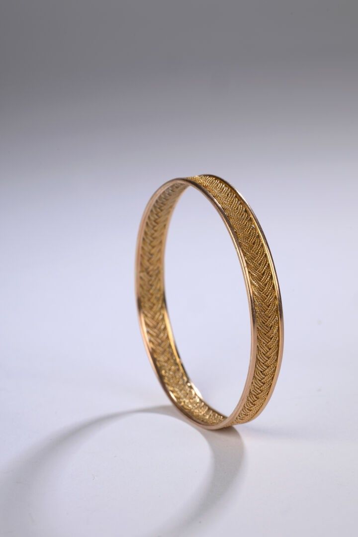 Woven string bracelet in yellow gold 750 ‰, diameter 6.3 cm, weight 20.75 g