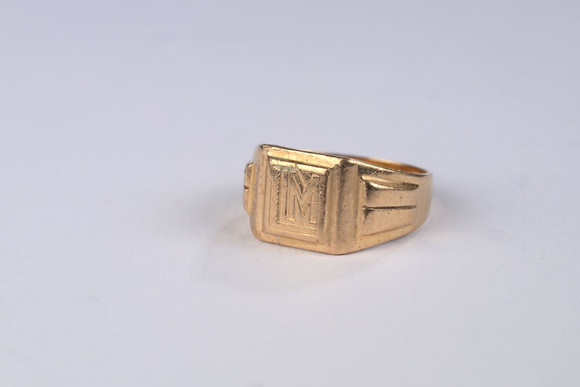 Small-finger Chevalière in yellow gold 750 ‰ engraved with an M, finger size 45, weight 3.48 g