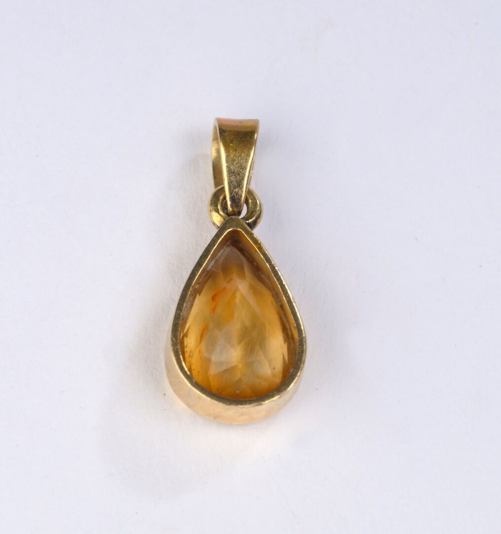 Lot of three rings in yellow gold 750 ‰ set with small gemstones, weight 4.67 g , a charm set with a citrine on yellow gold 750 ‰ weight 1.48 g is attached.