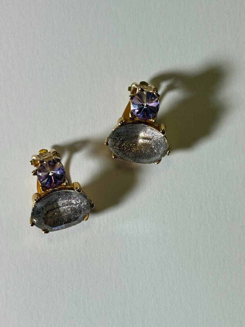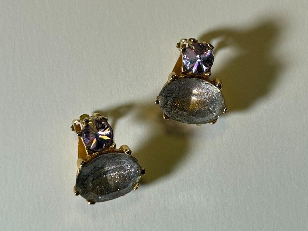 Christian LACROIX, Pair of ear clips in gilded metal decorated with fantasy stones.