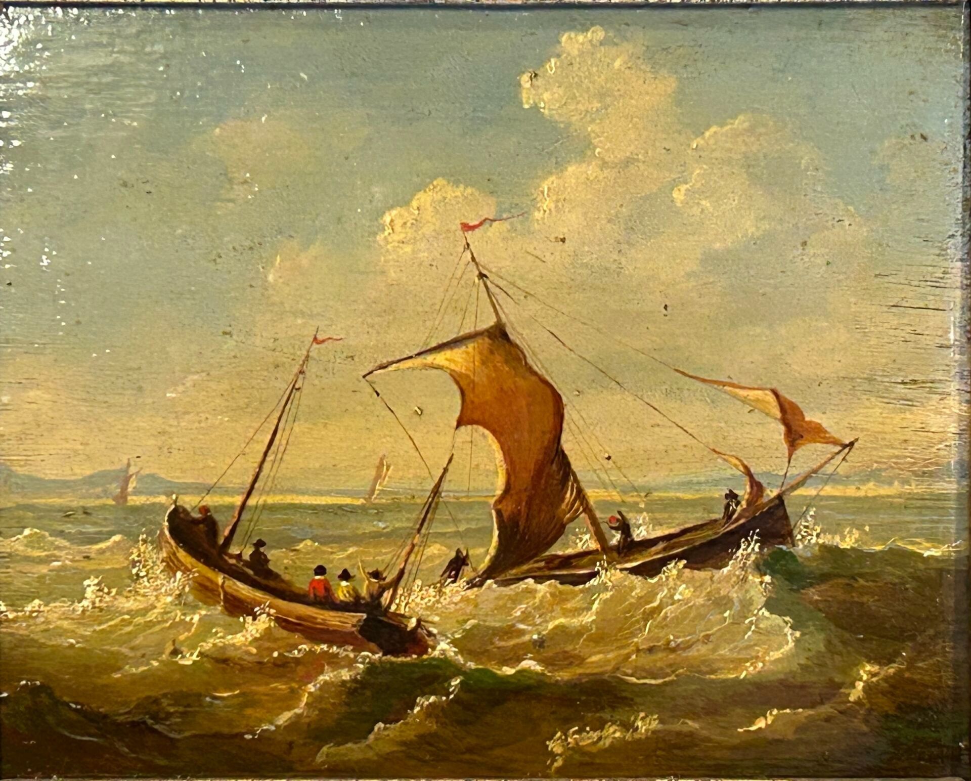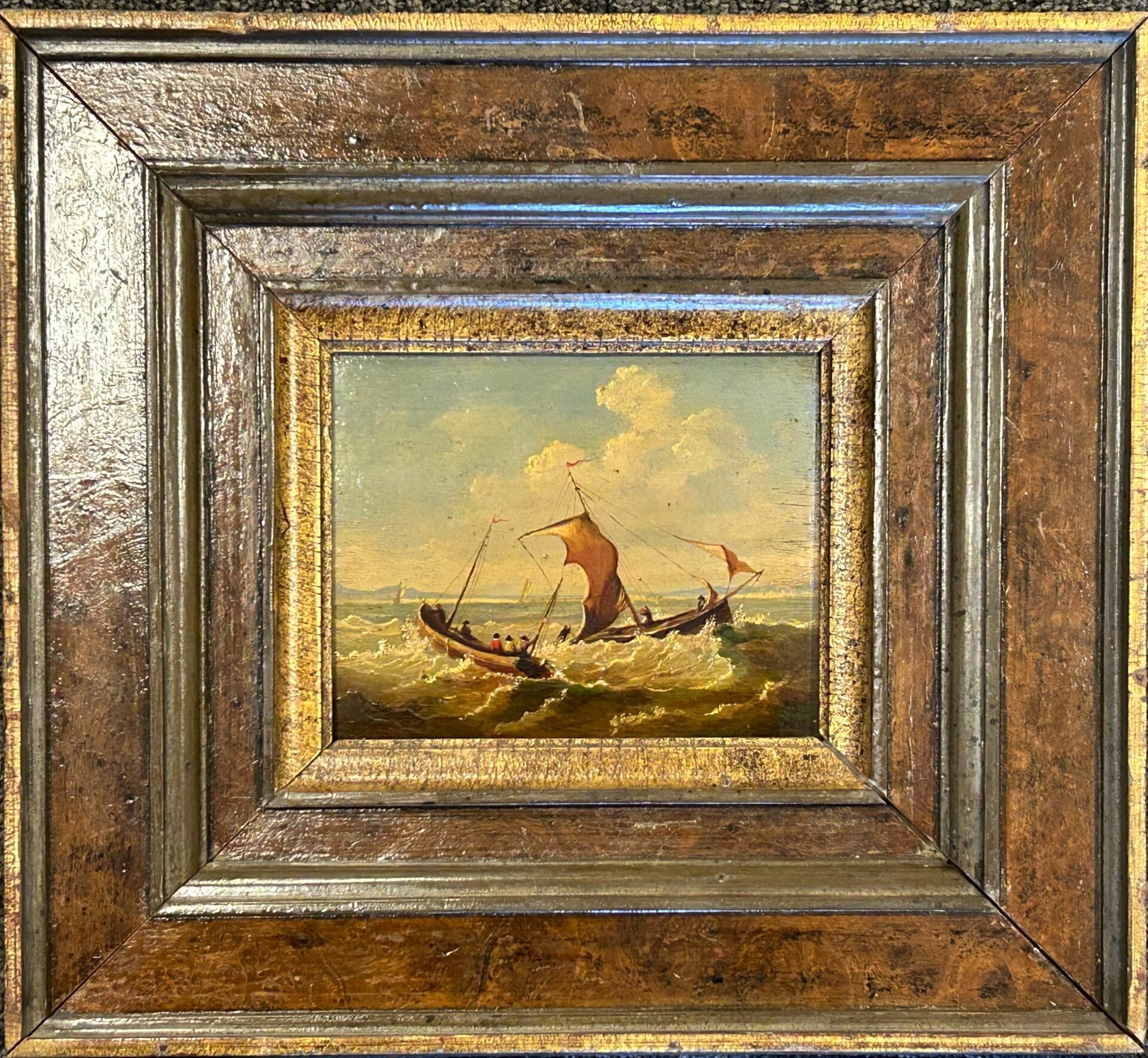 French school of the XIXth century, Boats at sea, oil on panel. 11 x 14 cm on view