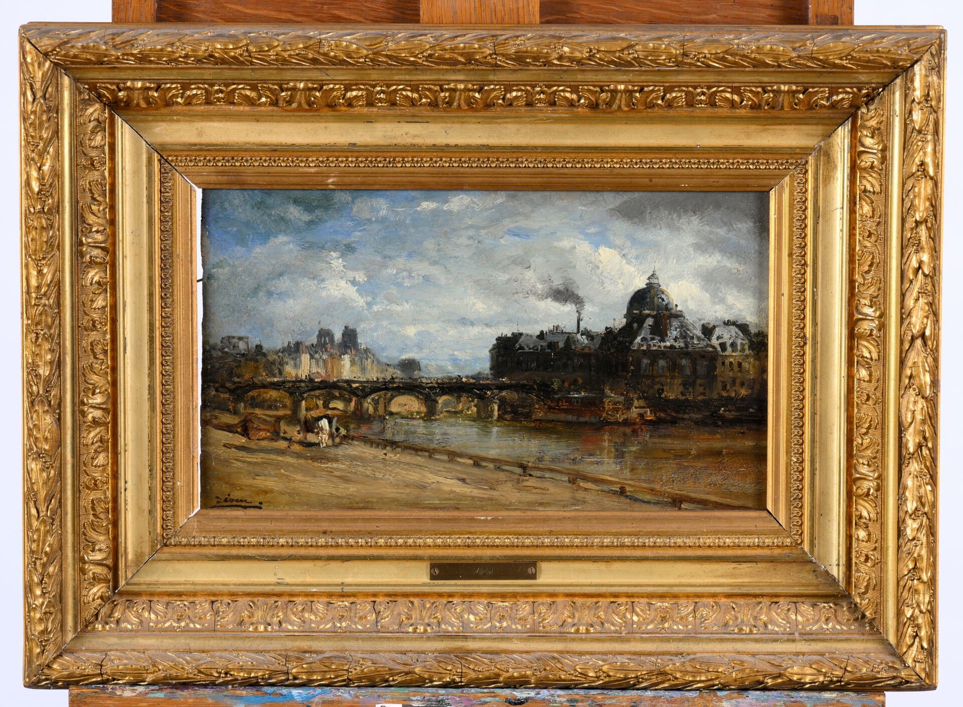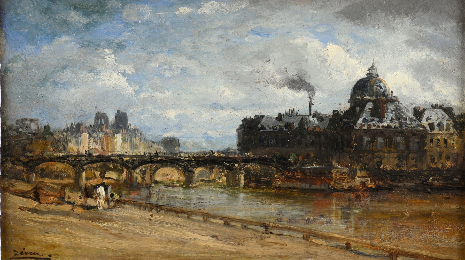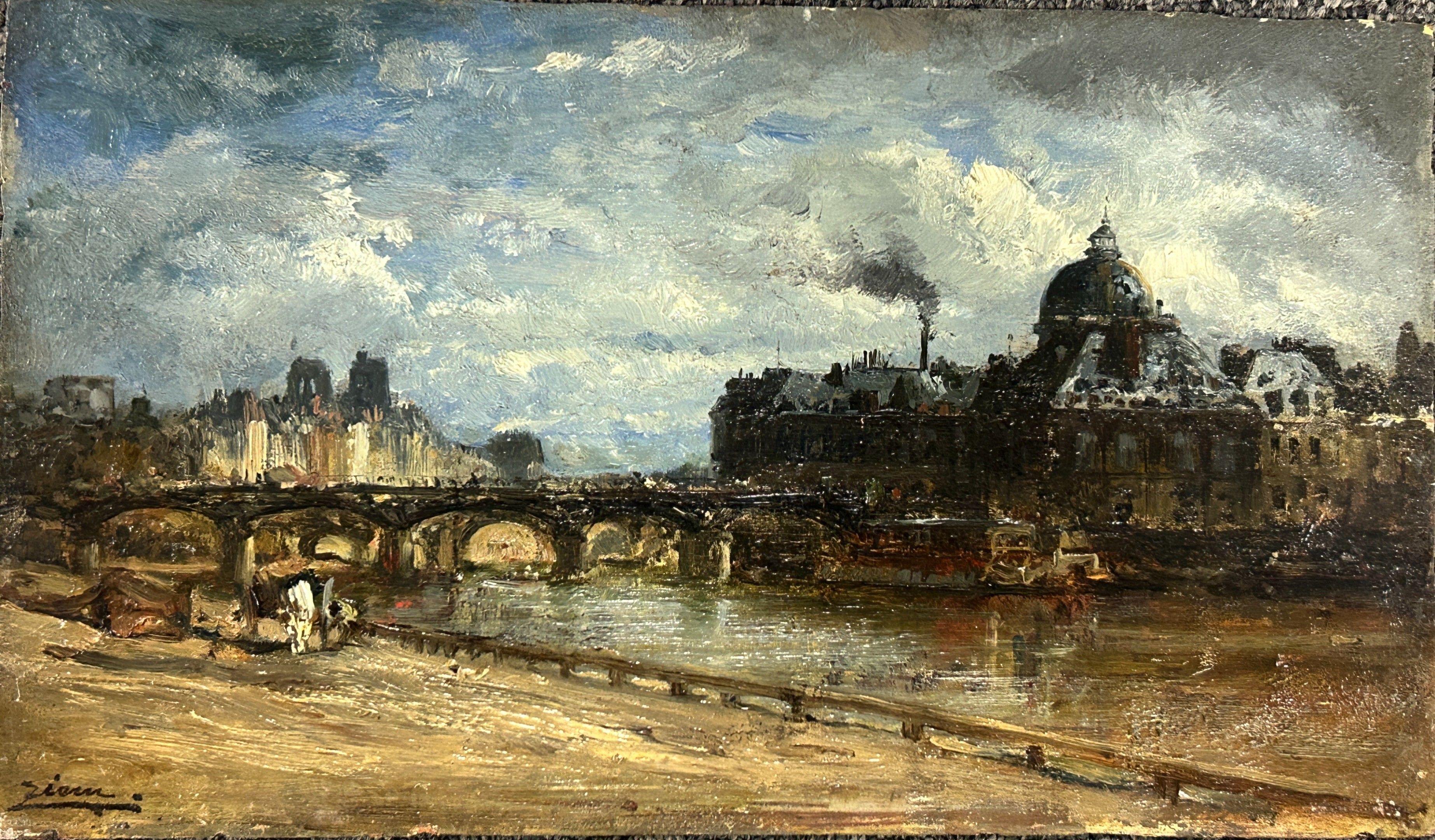Félix ZIEM (1821-1911), Le pont des Arts, oil on panel, signed lower left. 18 x 33 cm (very slight lack of old paint in middle of right margin, hidden under frame)