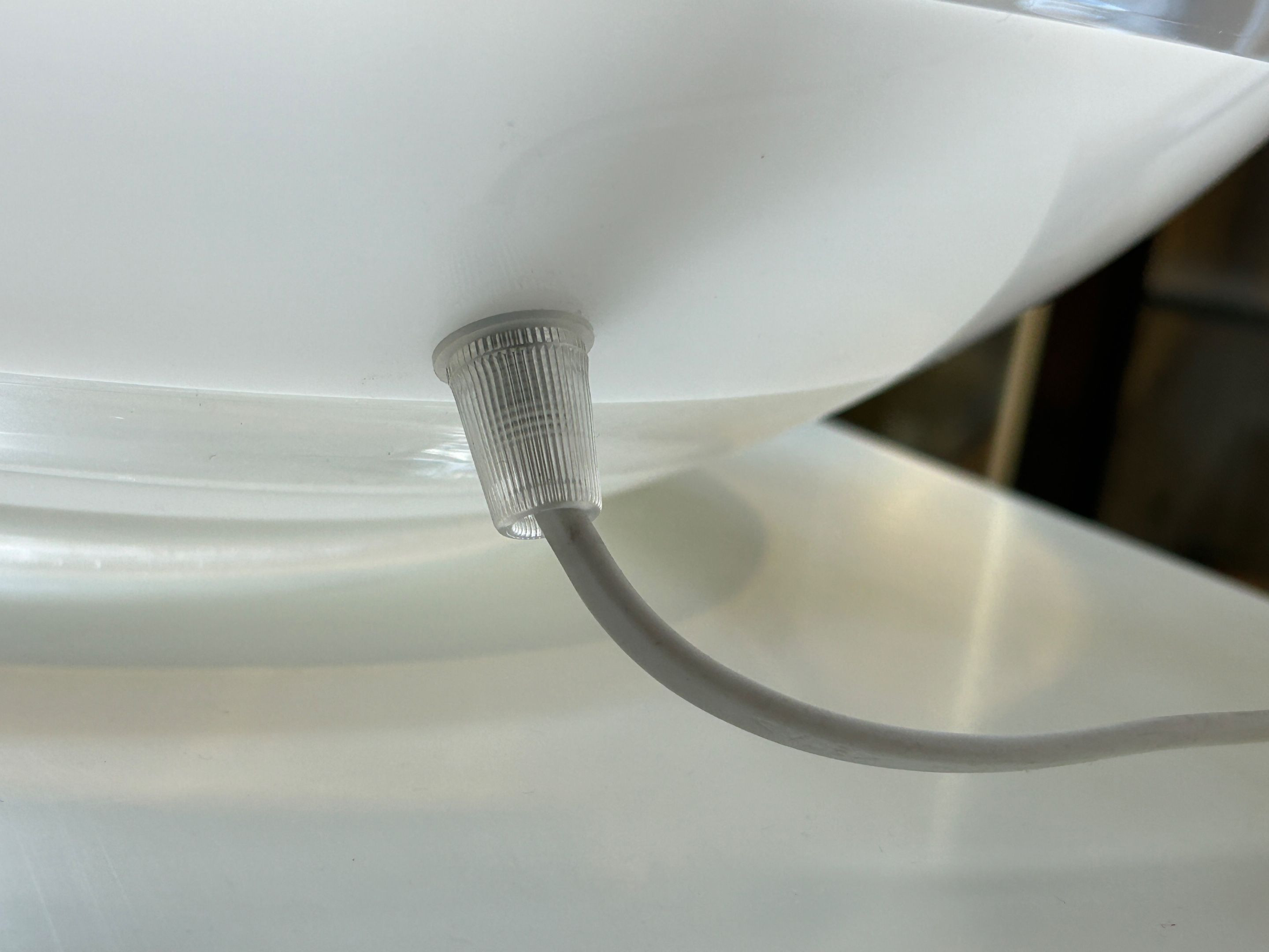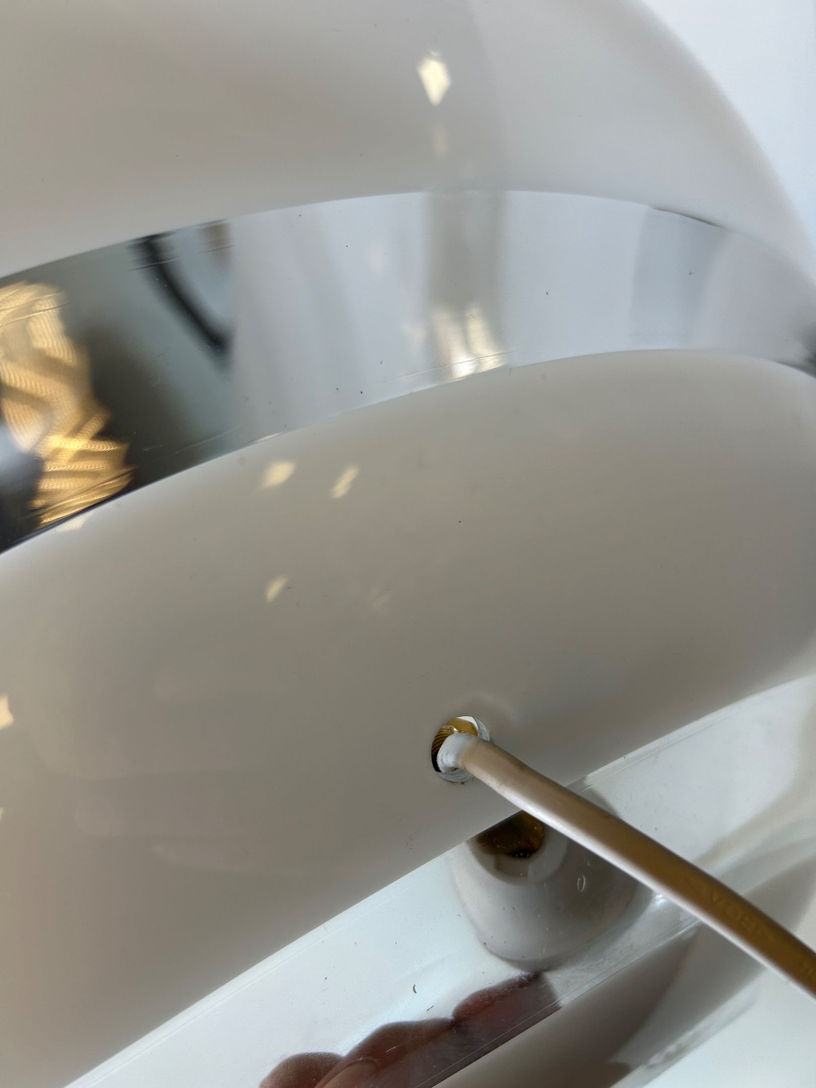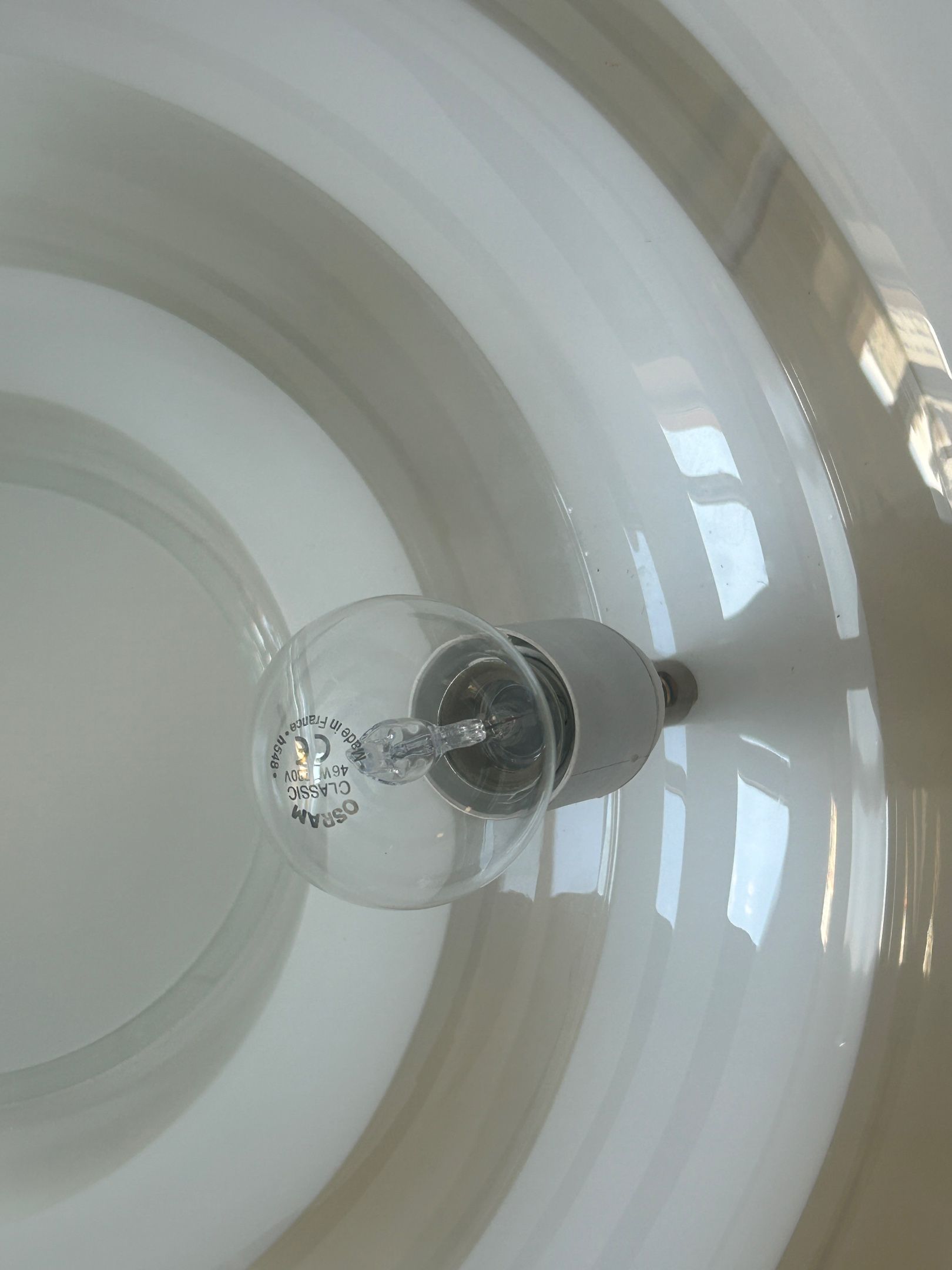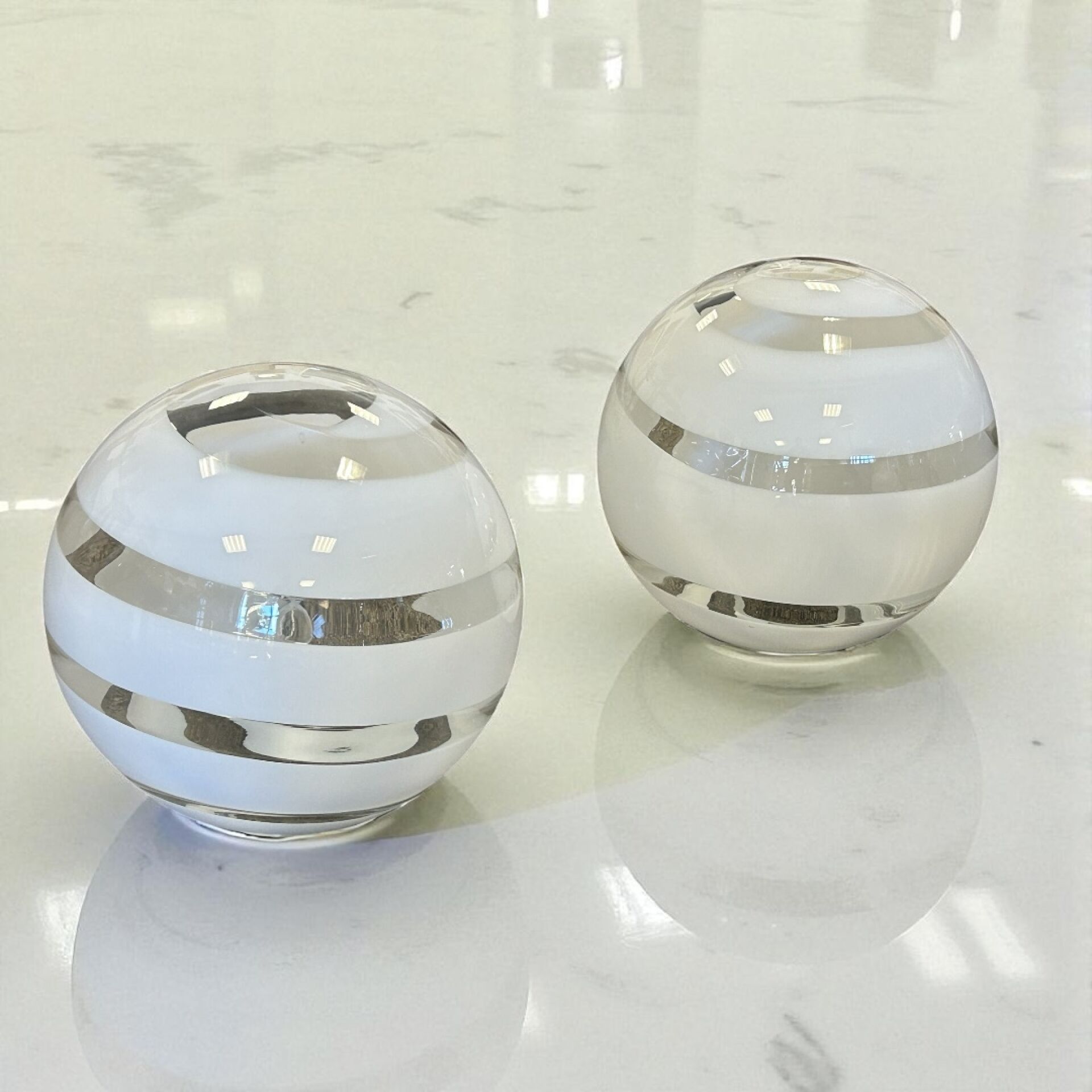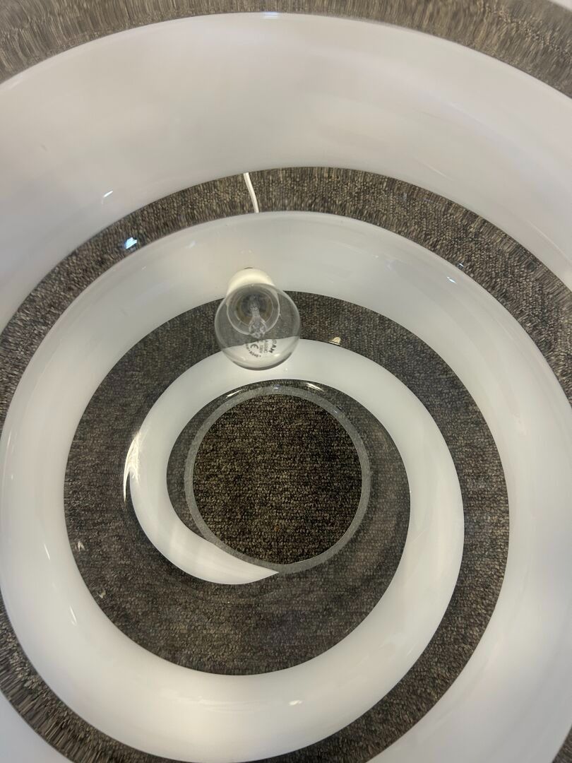 Pair of large spherical lamps in transparent Murano glass with a white spiral in the Venini style. D. 48 cm