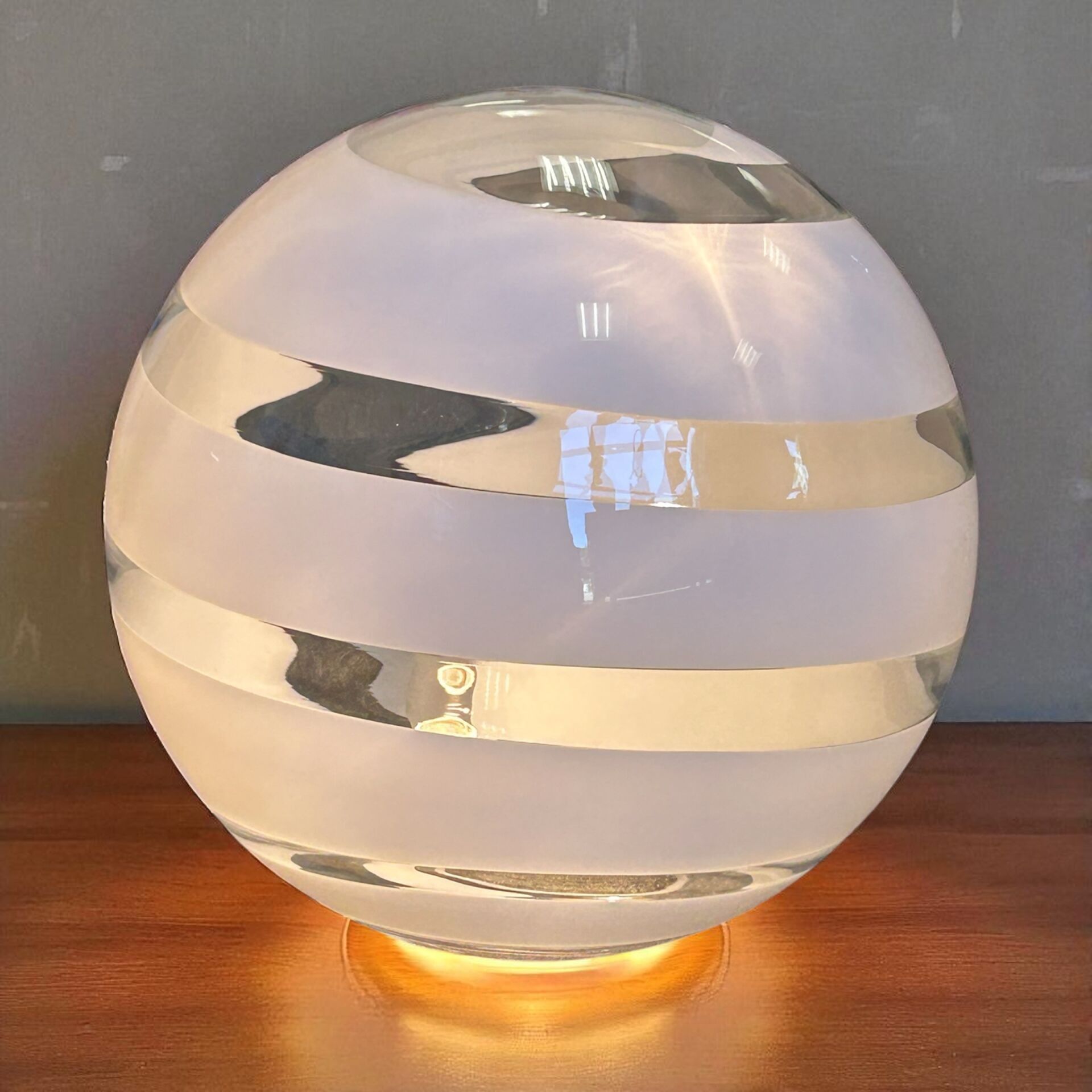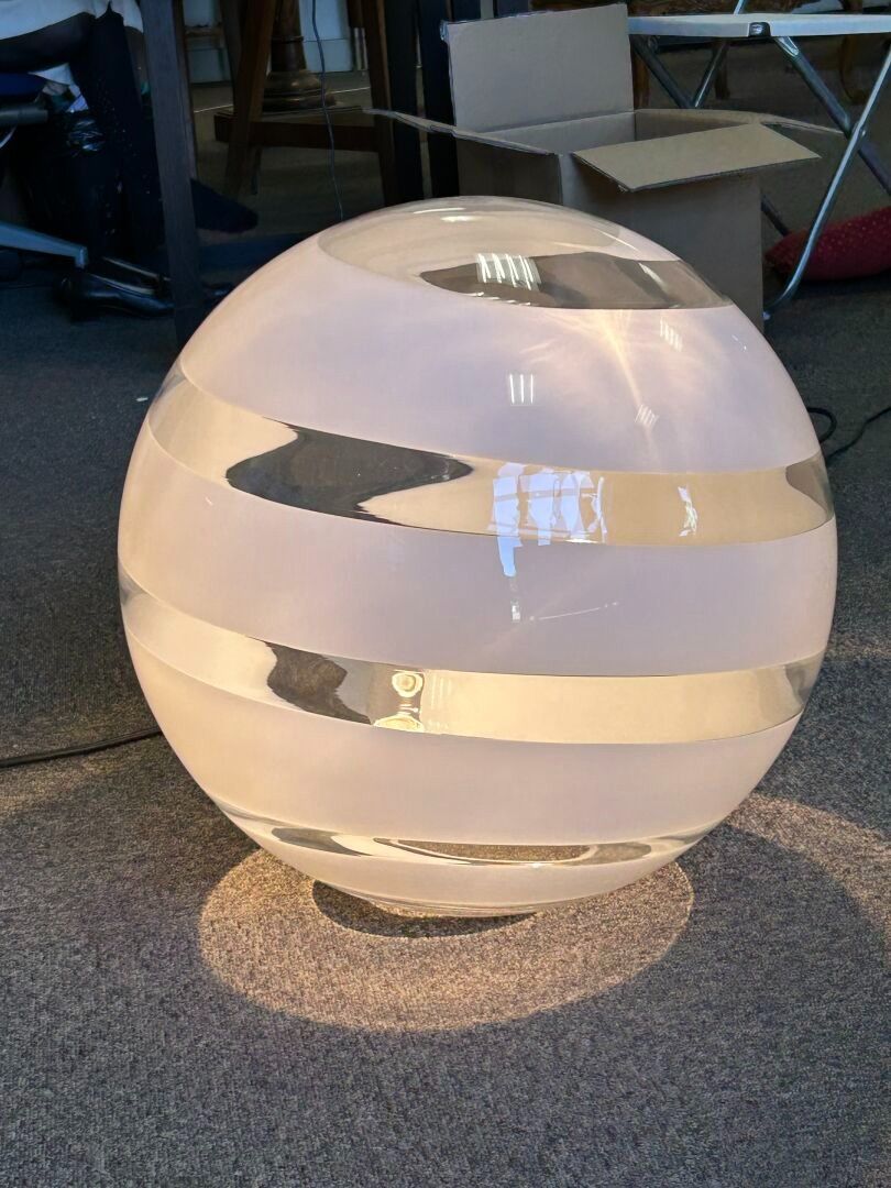 Premium Pair of large spherical lamps in transparent Murano glass wi…
