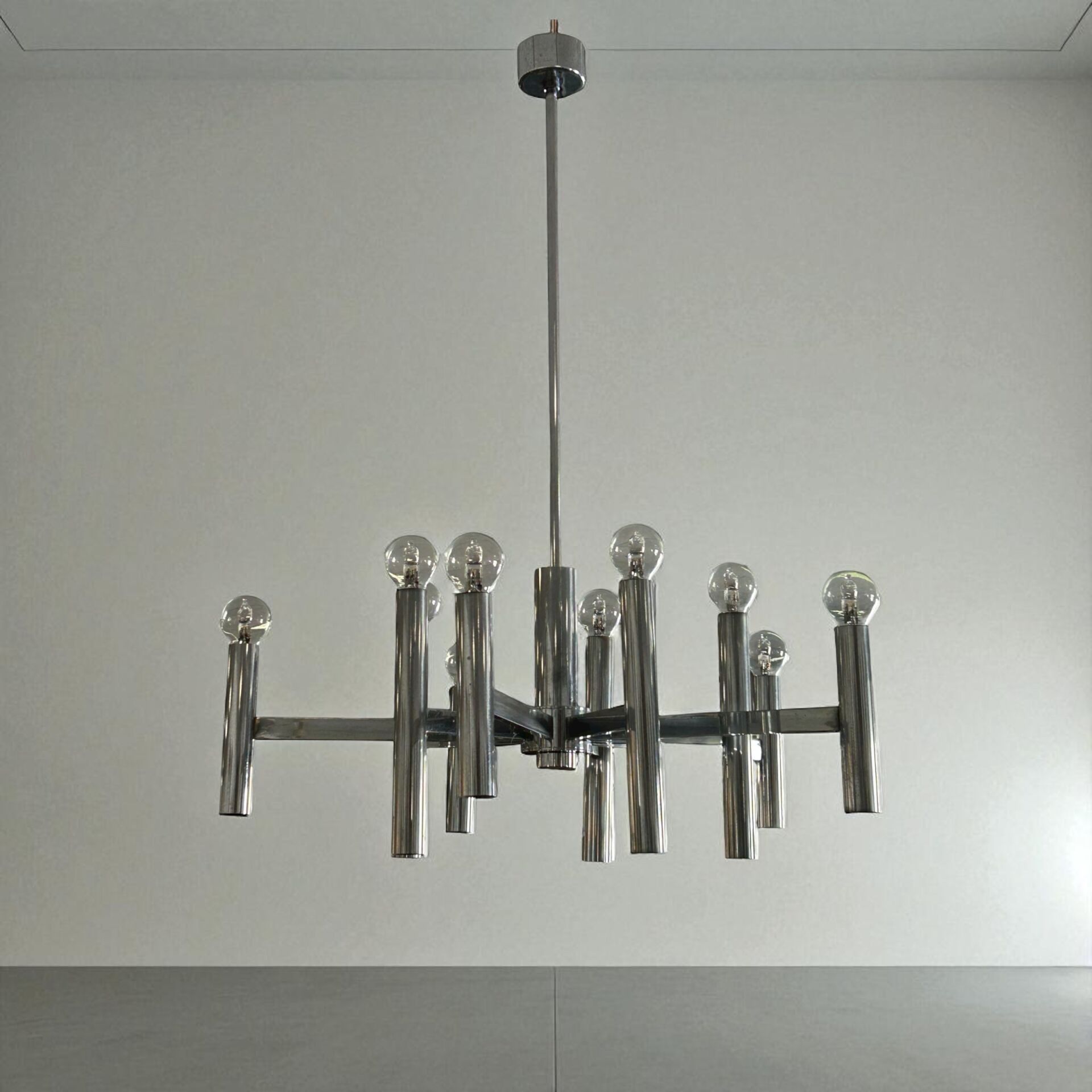 Gaetano SCIOLARI (XXth) Chromed metal chandelier with twenty…
