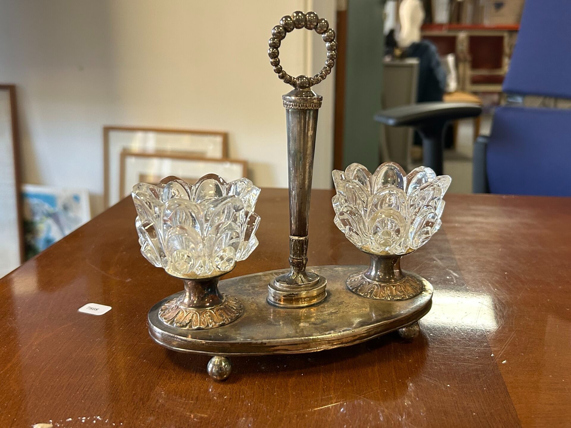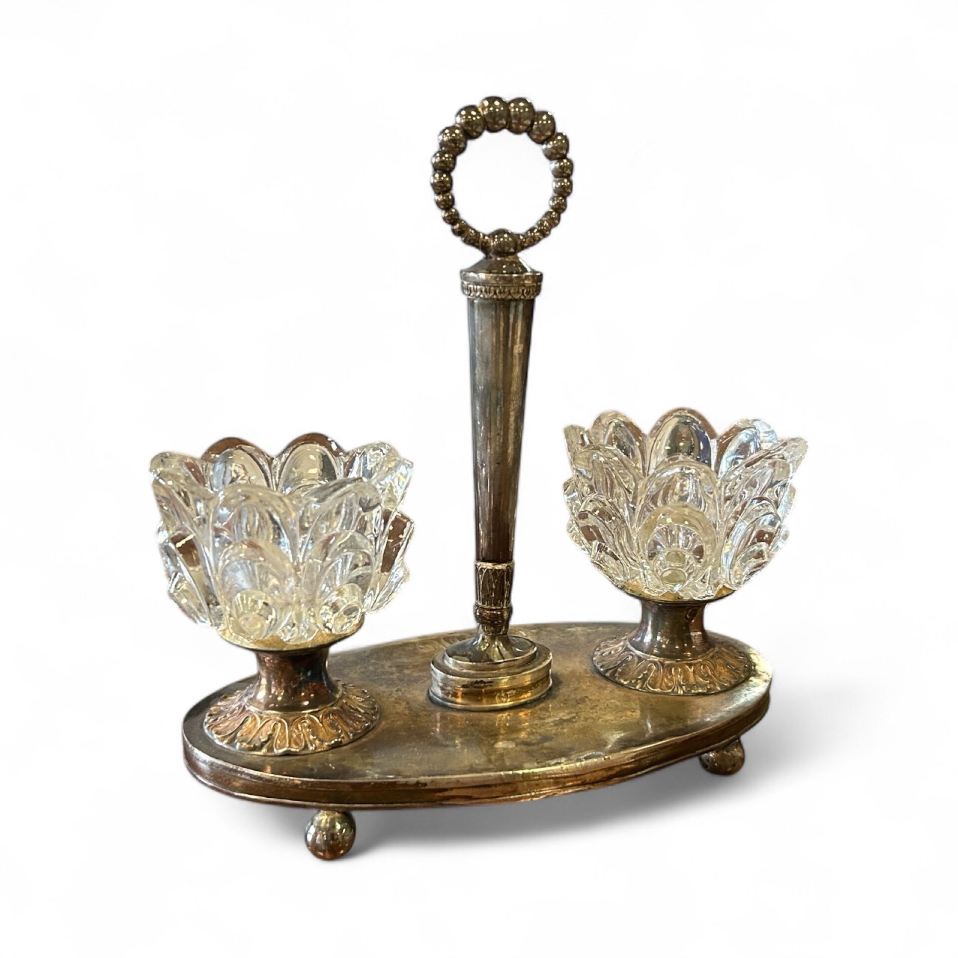 * Double salt cellar in crystal and silver mount hallmarked vieillard, gadroon decoration, Empire style, Early 19th century. PB. 595.21 g