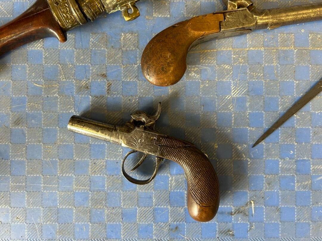 * Lot of two small 19th century pistols, a stylus (accidents…