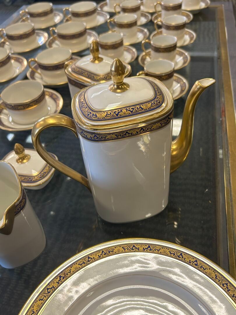 * REYNAUD in LIMOGES, white porcelain service with royal blu…