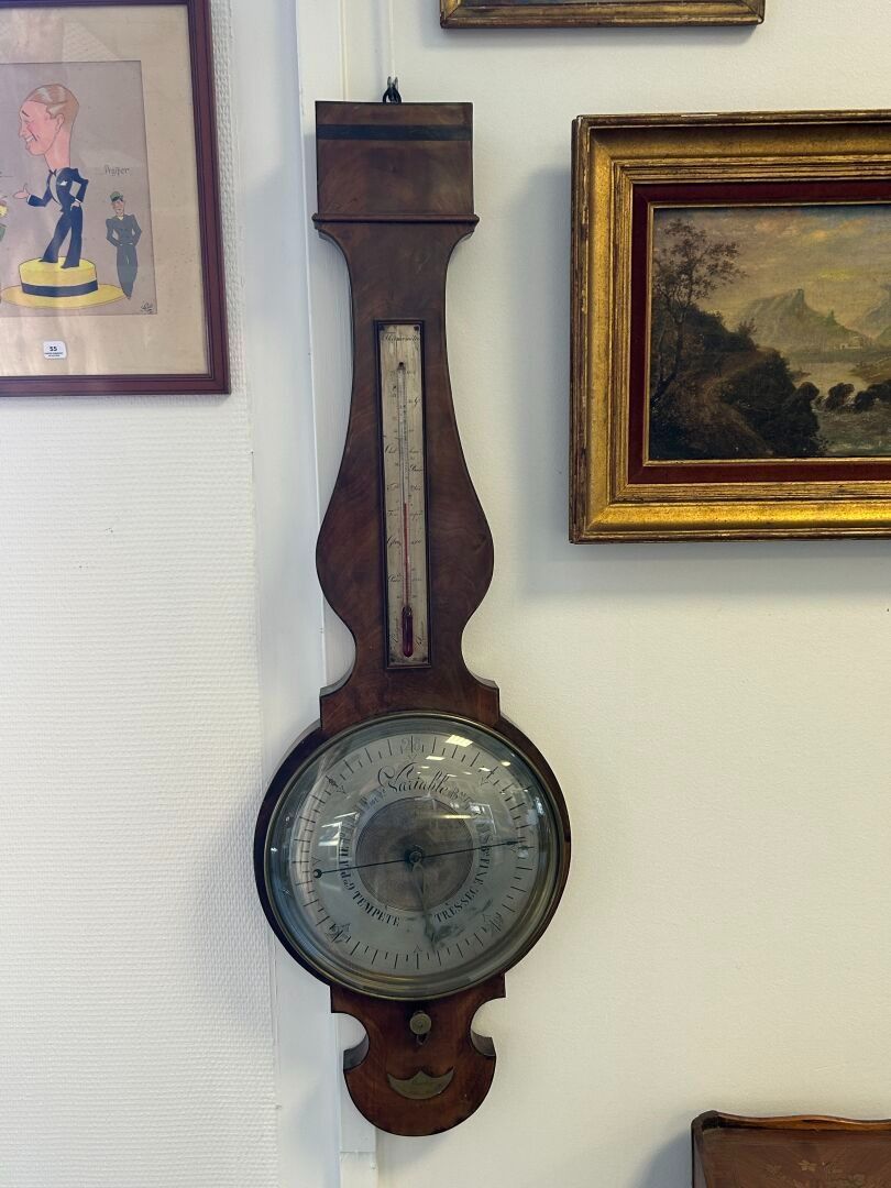 * Barometer Mercury thermometer in flame mahogany veneer by …