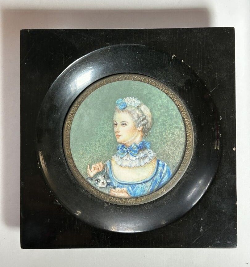 Painted miniature "Young woman with a cat" signed Agnès, 20t…