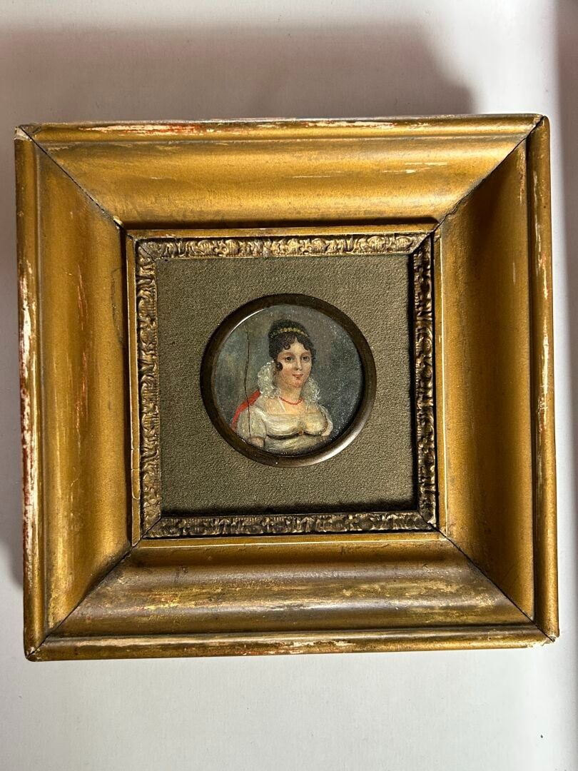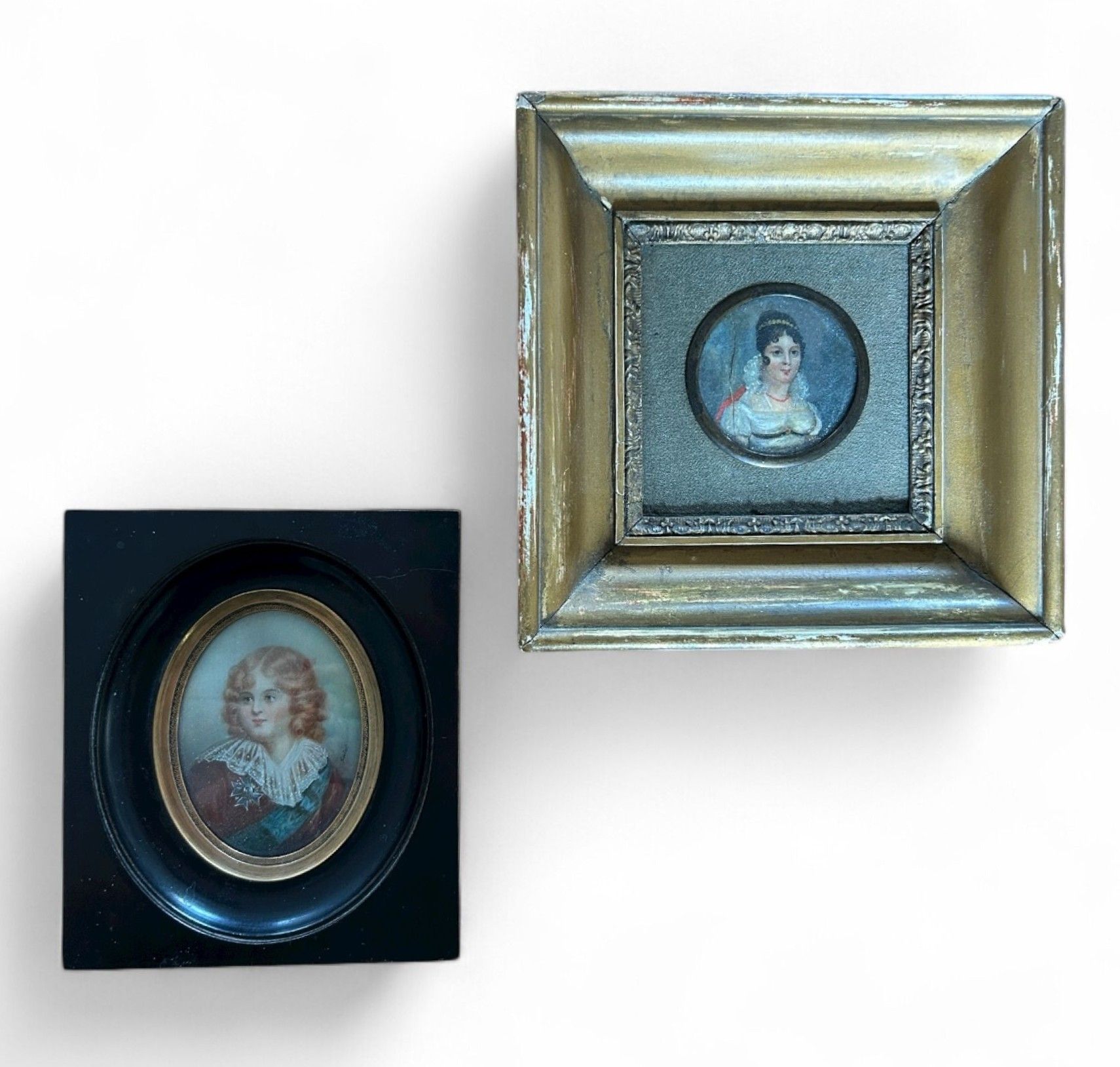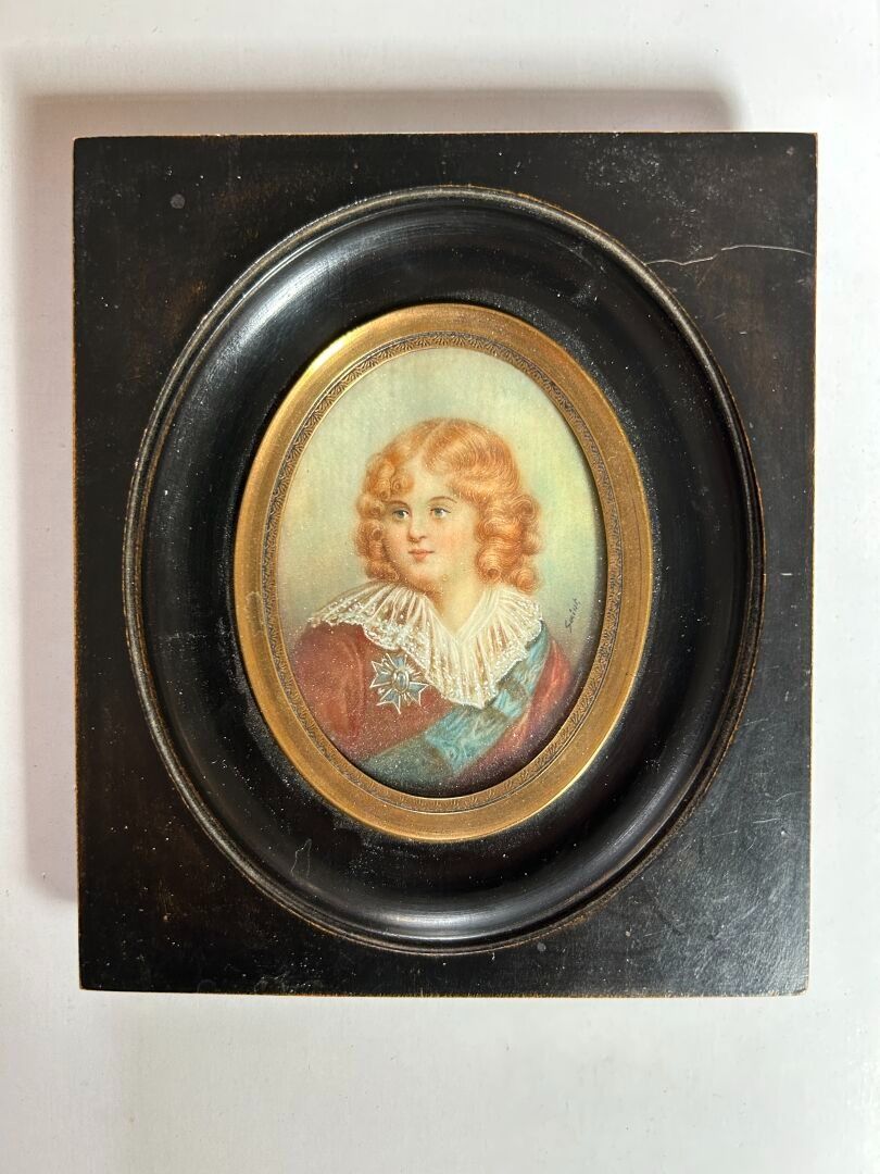 Set of two miniatures including the King of Rome, signed Saint and Portrait of Joséphine, 19th century work (accident to the portrait of Joséphine) D. 8 x 5.5 cm on view and D. 5 cm