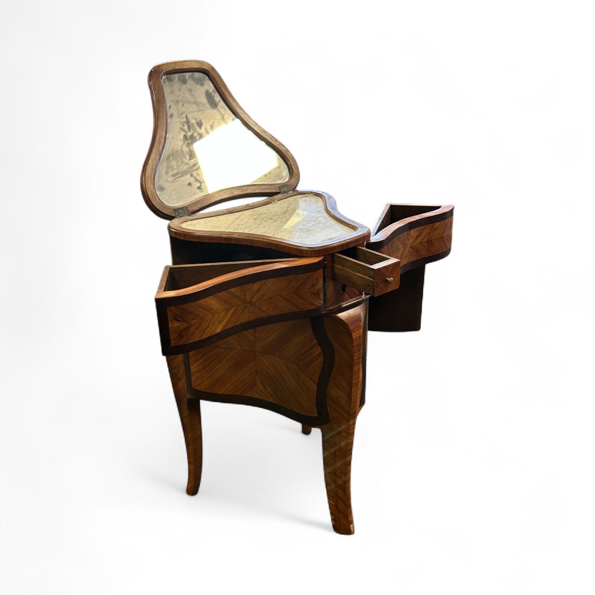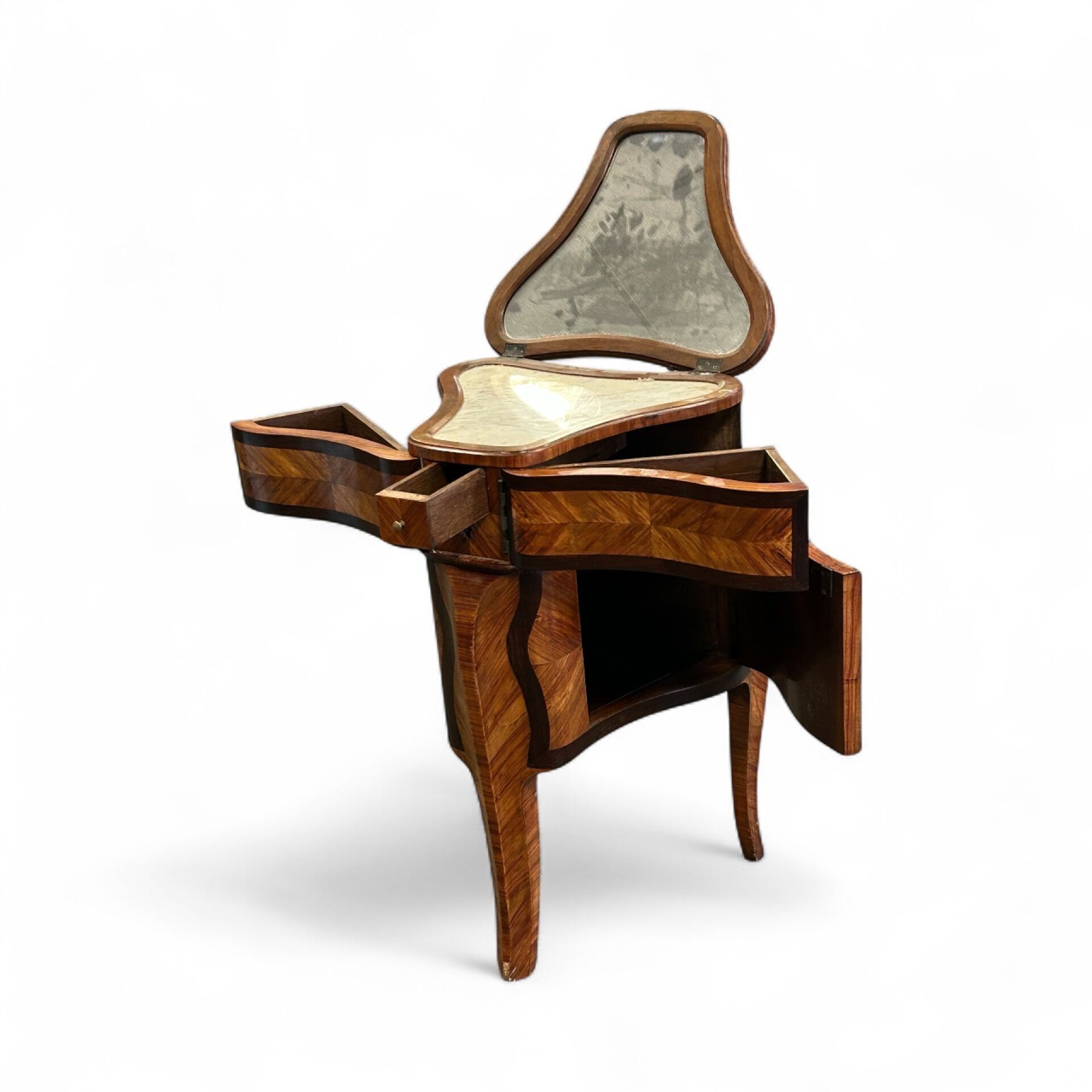 Heart-shaped dressing table in rosewood and violet veneer, o…