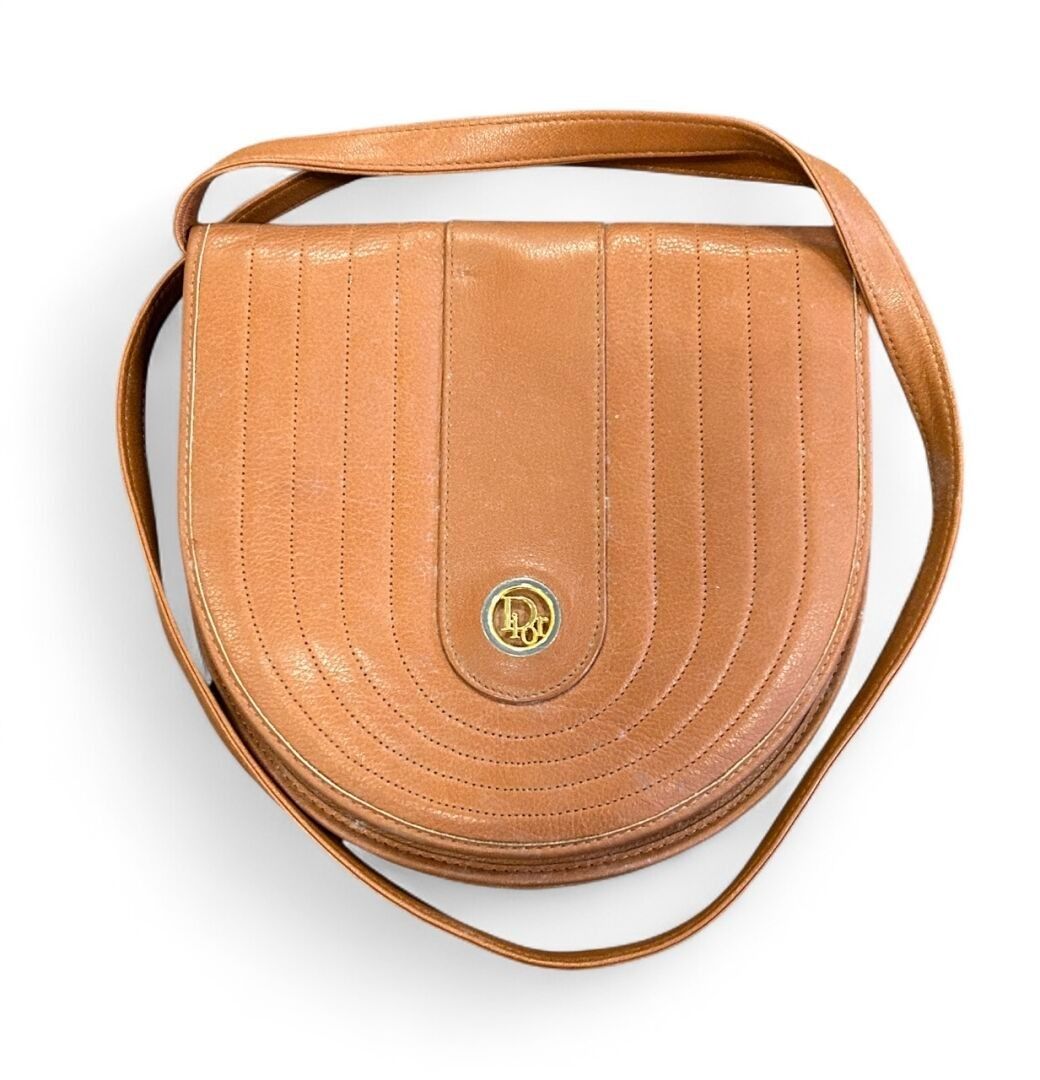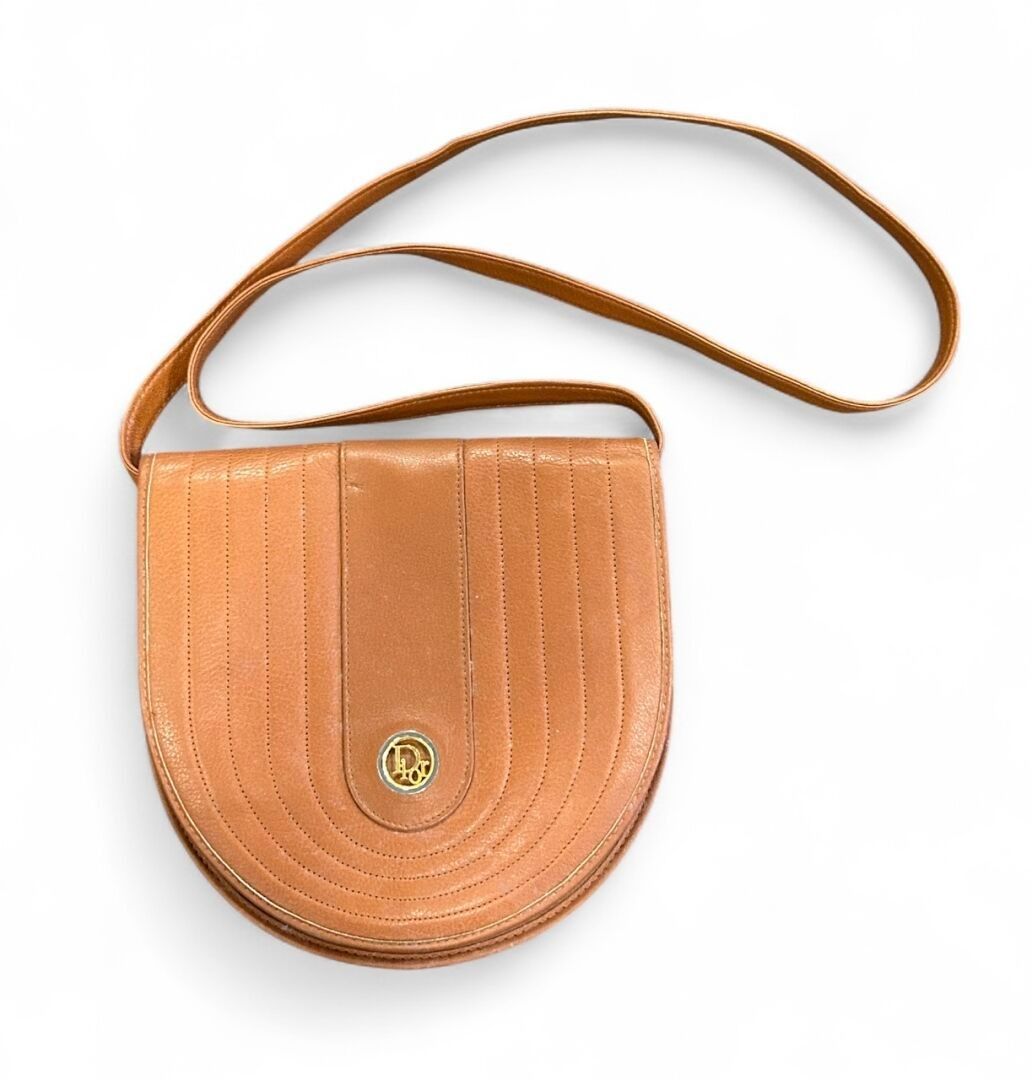 CHRISTIAN DIOR, Brown leather shoulder bag, "BESACE" model.