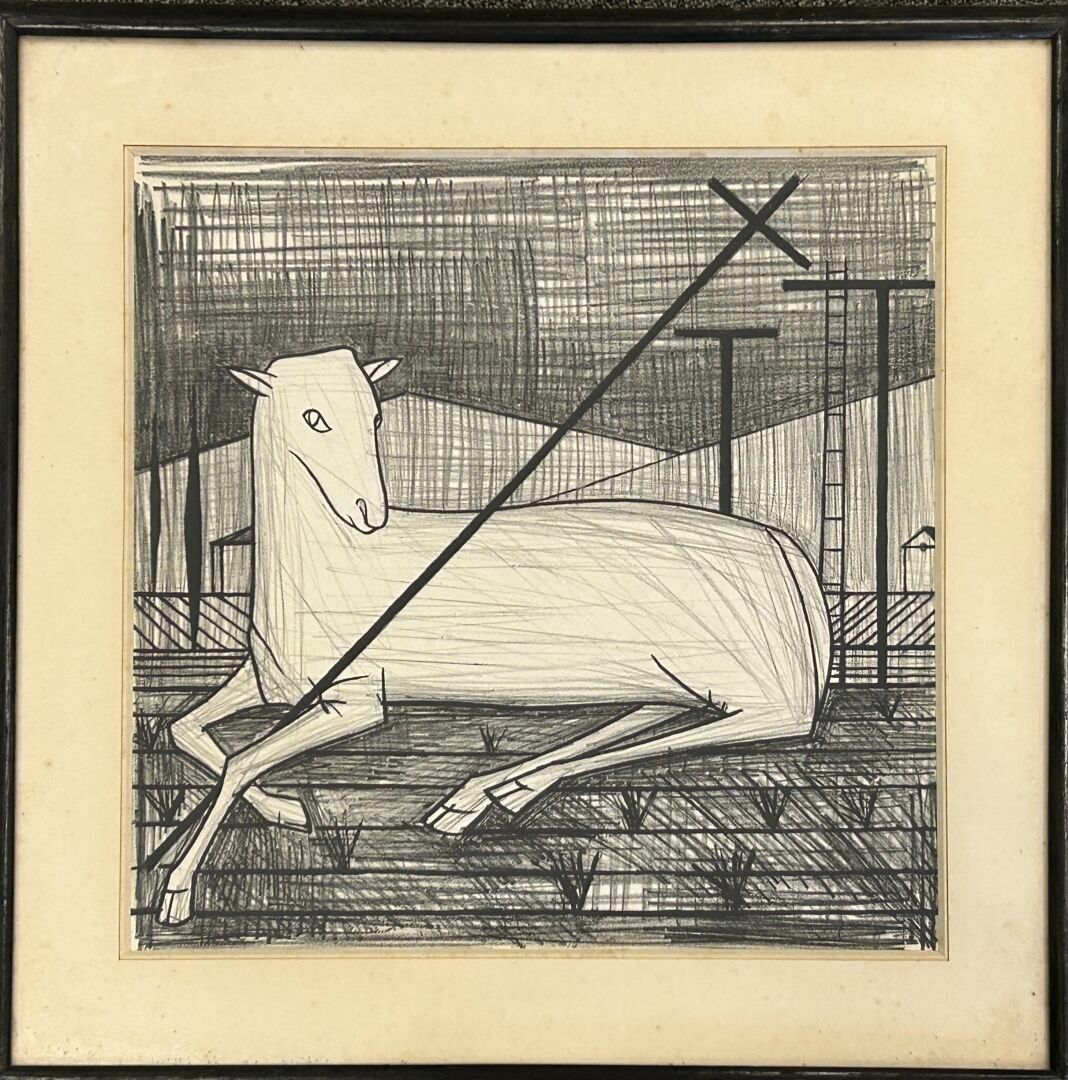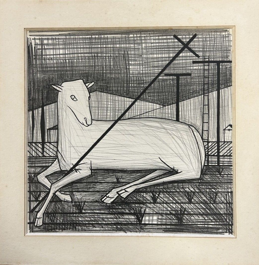 Bernard BUFFET (1928-1999) After "Agneau Pascal", 1954 Lithograph in black (Marie-Louise glued, impossible to see if signed). 39.5 x 40 cm on view