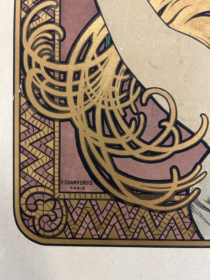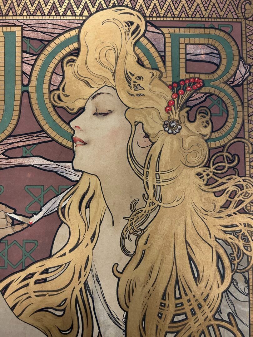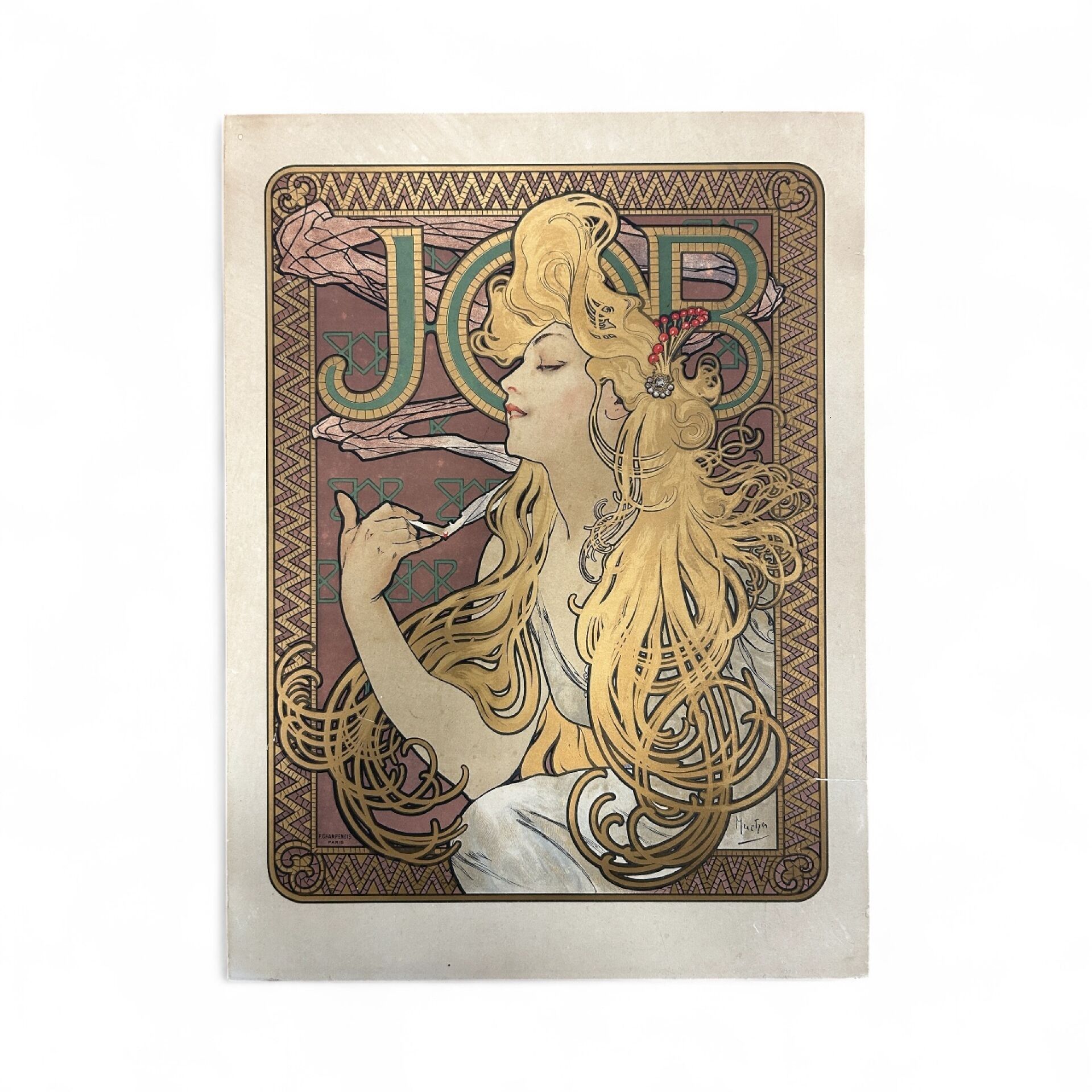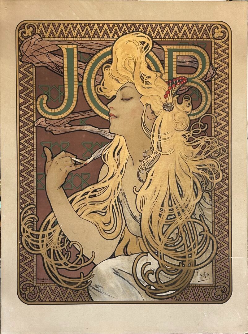 Alphonse MUCHA (1860 - 1939), "JOB", 1896, polychrome hardback chromolithograph, signed "Mucha" lower right in the plate and of the printer "F.Champenois Paris" lower left. 67.7 x 45 cm (scratch on the right margin encroaching slightly on the decoration).