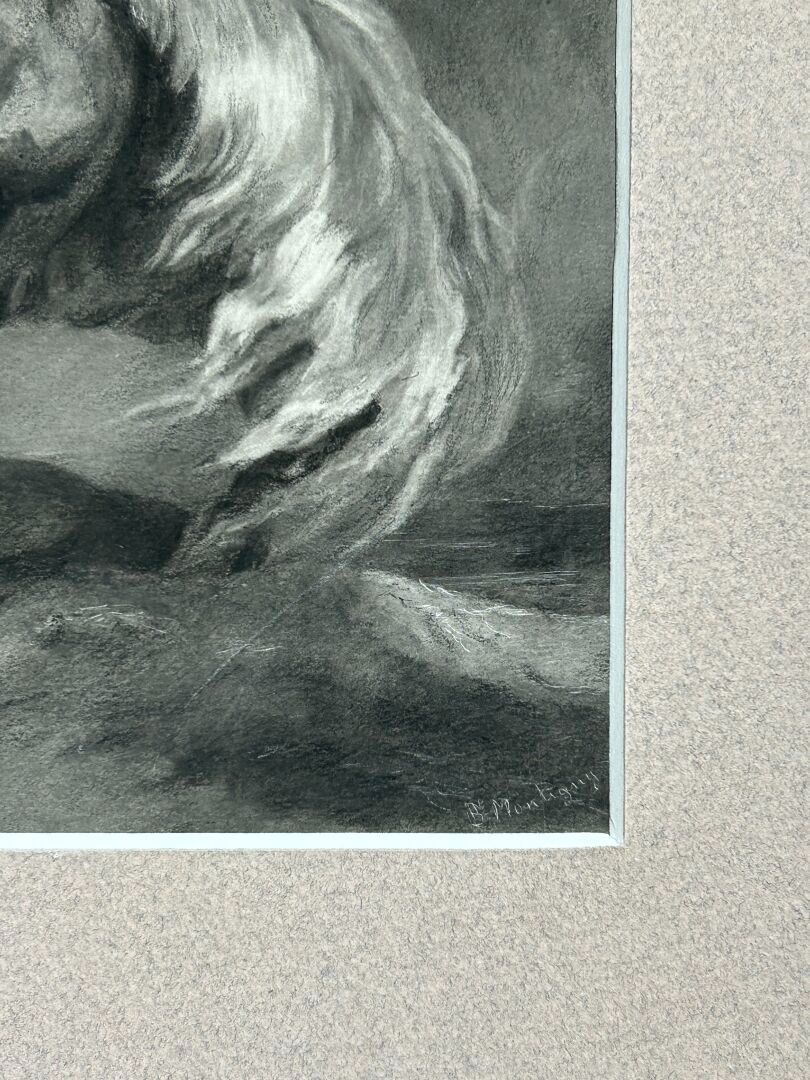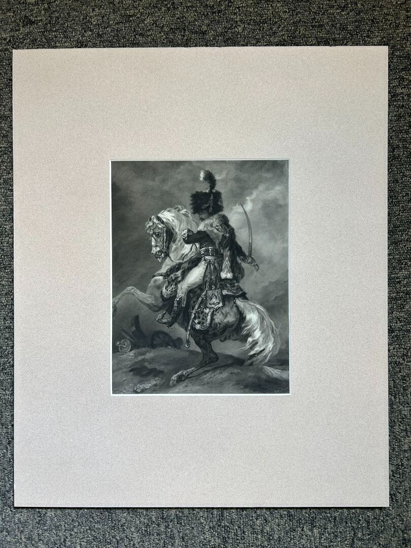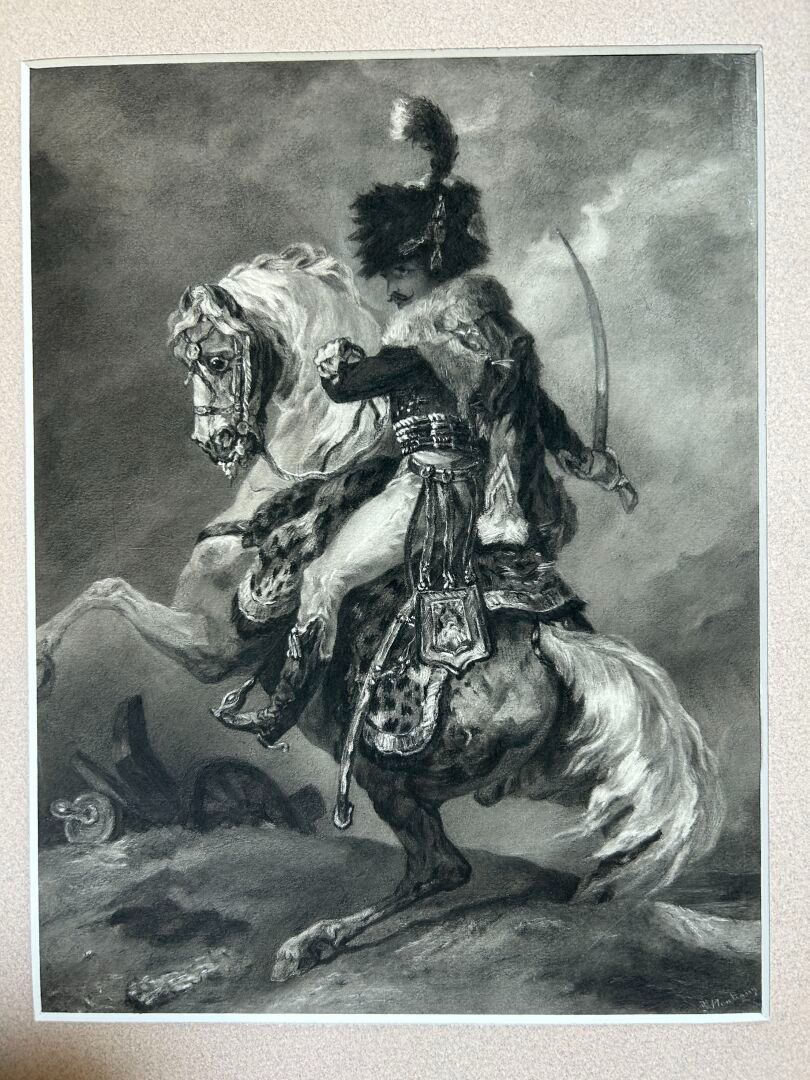 * Théodore Géricault (1791-1824) (after), Officier de Chasseurs à Cheval de la Garde Impériale chargeant, drawing in black stone and white chalk signed lower right B. Montigny. Montigny. Sight 25 x 19.5 cm