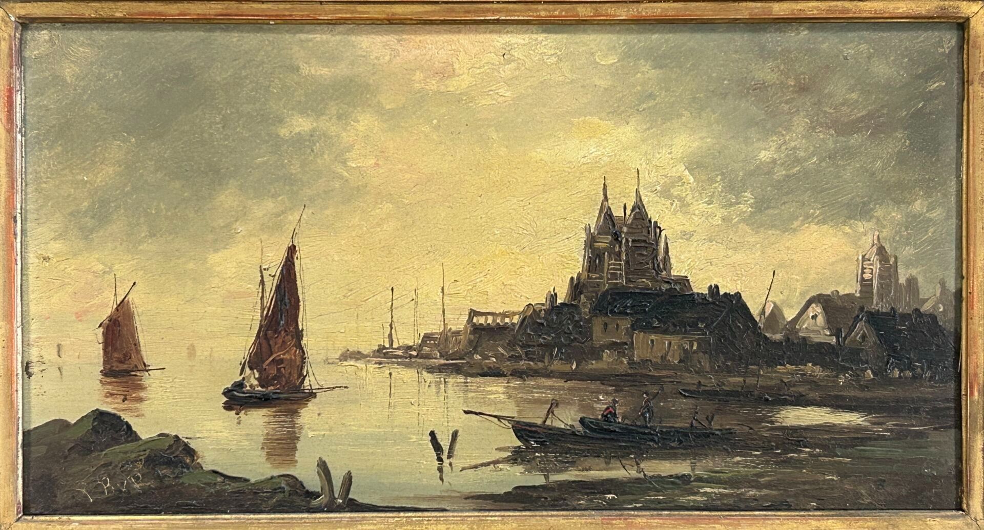BYR ( XIXth) Seascape, Pair of oil on panel forming a pendant. 22 x 41 cm