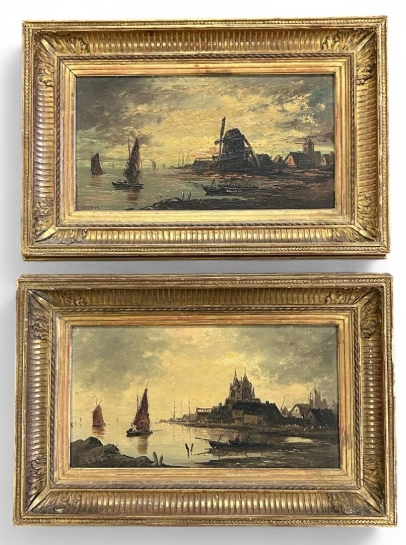 BYR ( XIXth) Seascape, Pair of oil on panel forming a pendan…