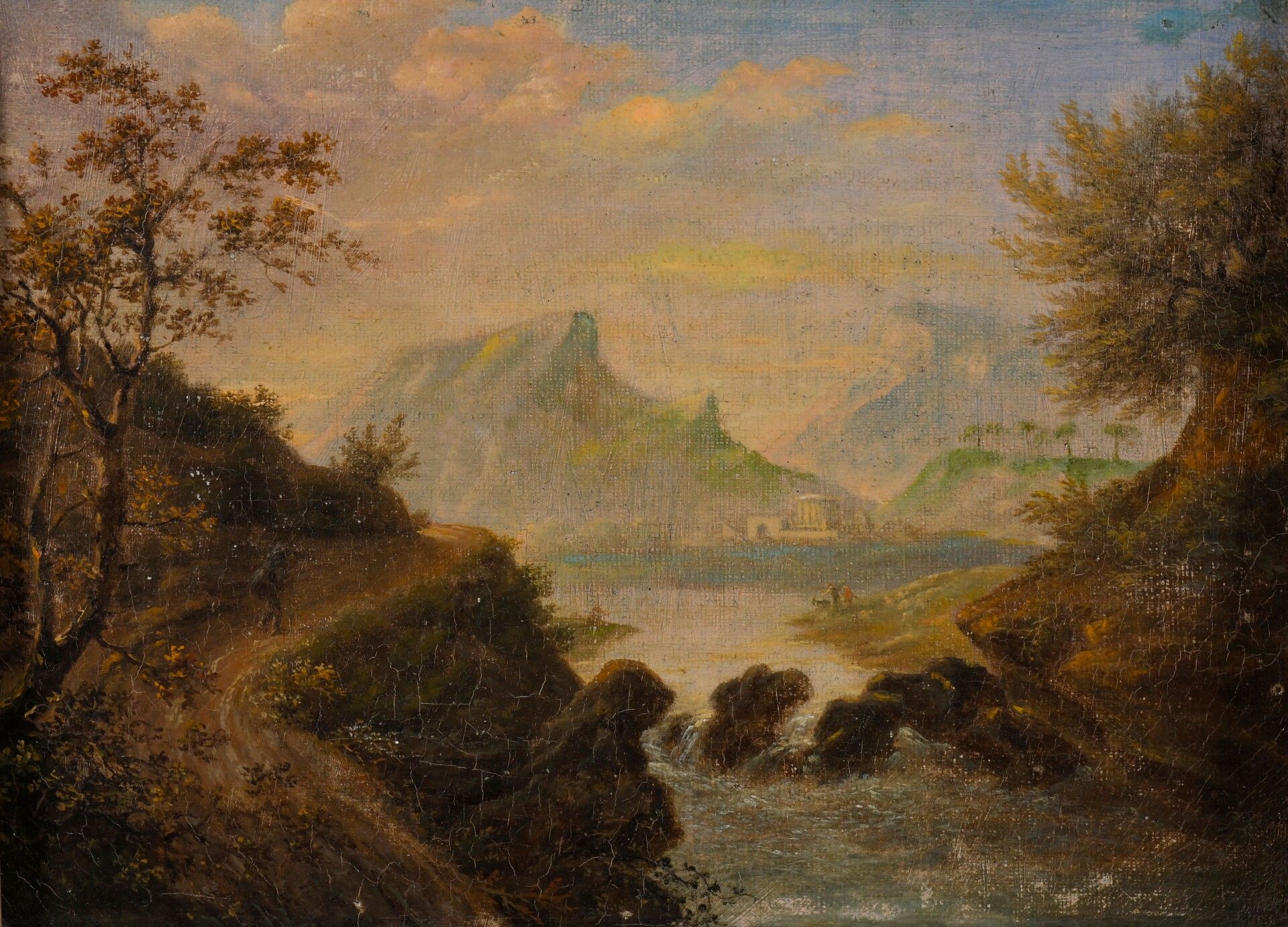 19th century French school, Animated landscape with a stream, oil on canvas. 24 x 32.5 cm