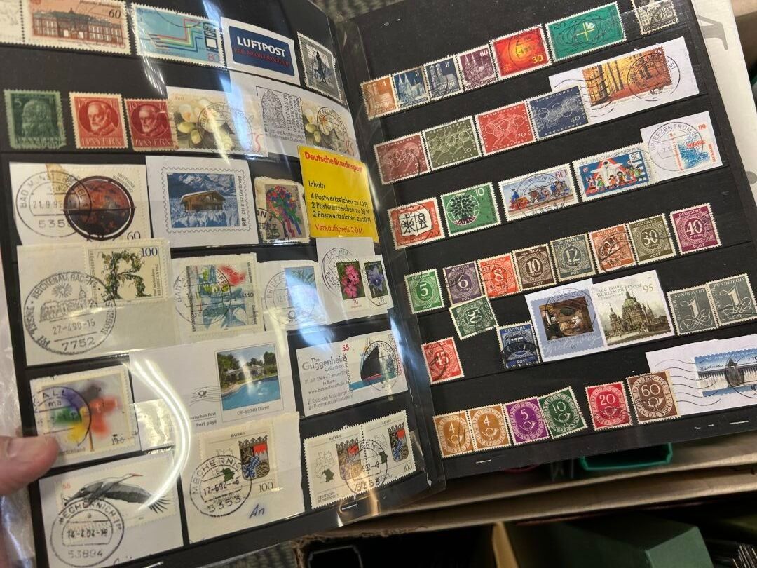 **/*/O, 20 Albums + 1 Box, World: loose stamps mostly modern and cancelled including Europe, Africa, thematic + modern mail.