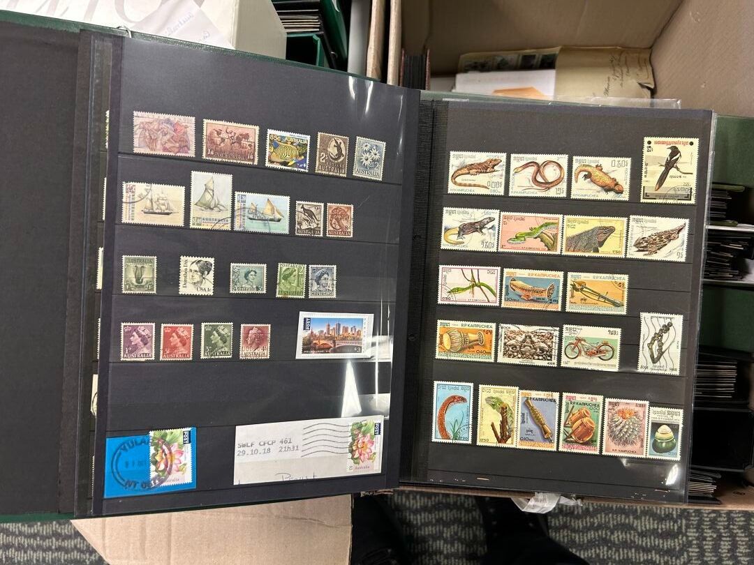 **/*/O, 20 Albums + 1 Box, World: loose stamps mostly modern…