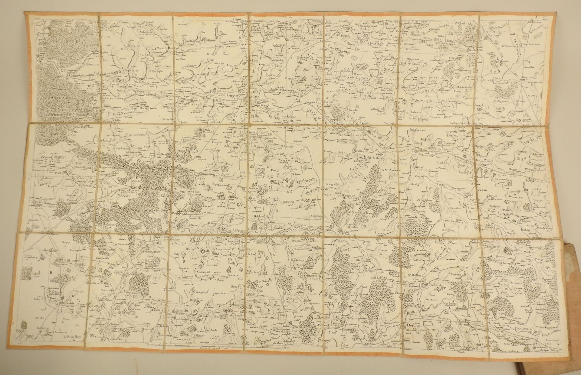 Scale of ten thousand Toises. Twenty-one sheet canvas map.