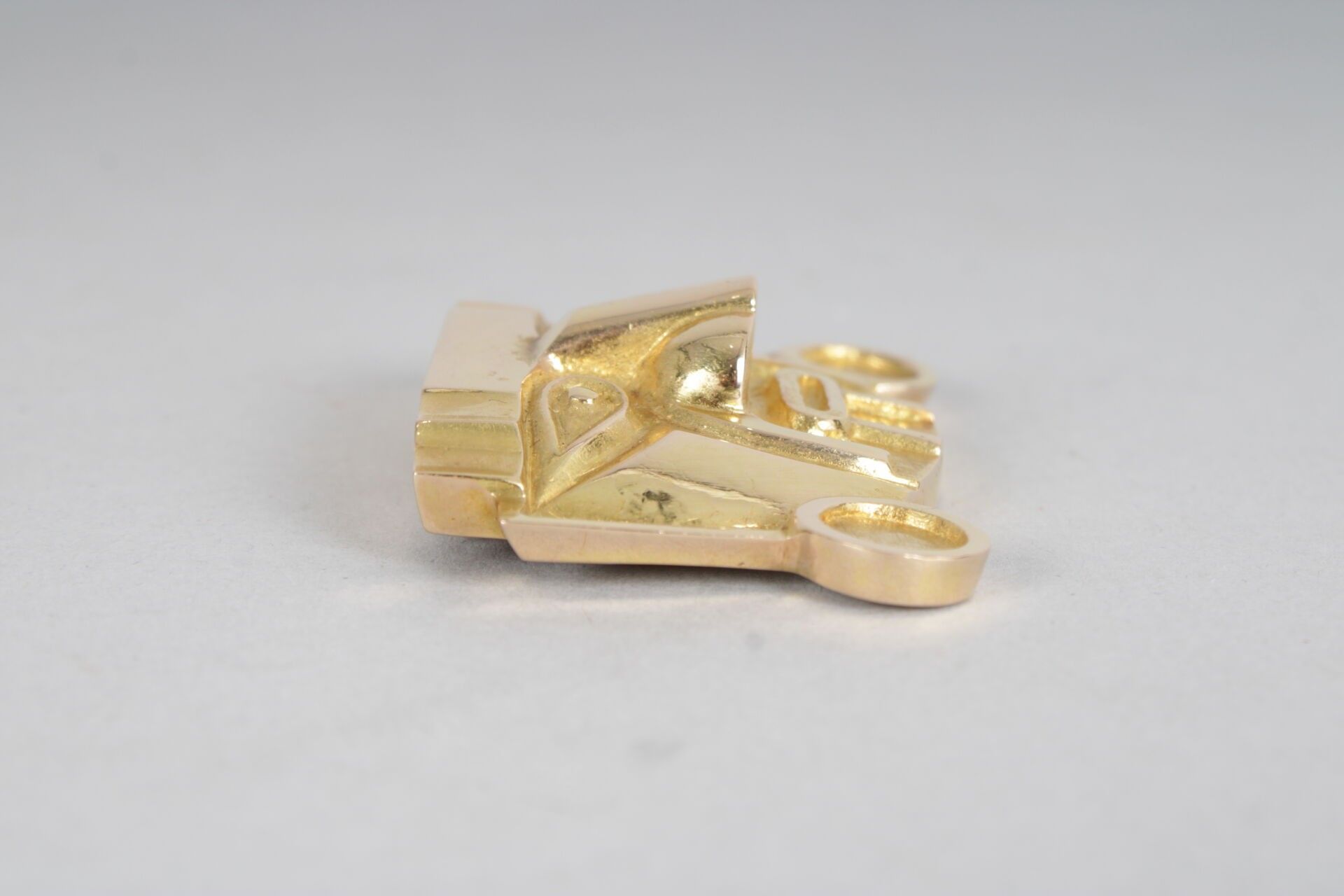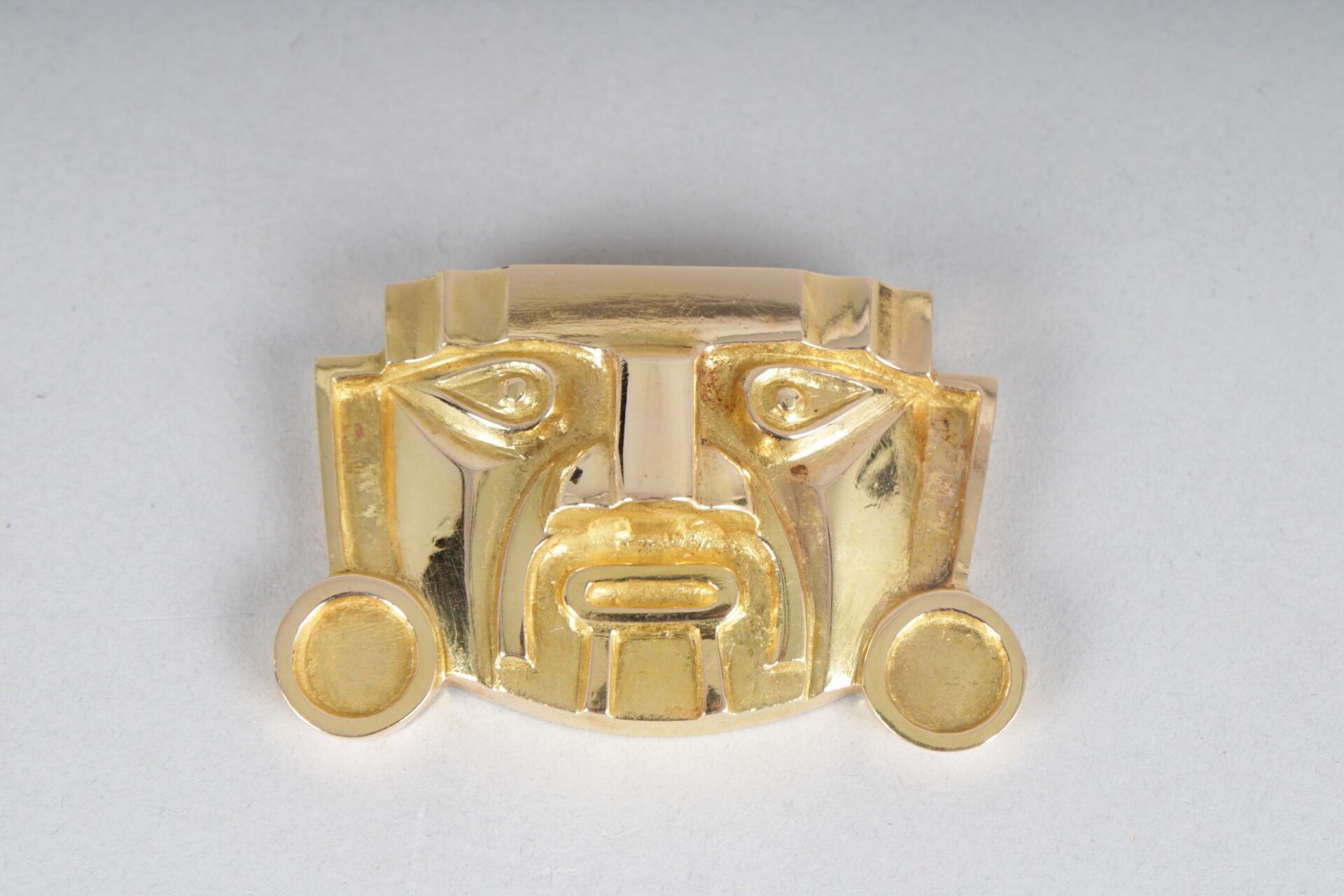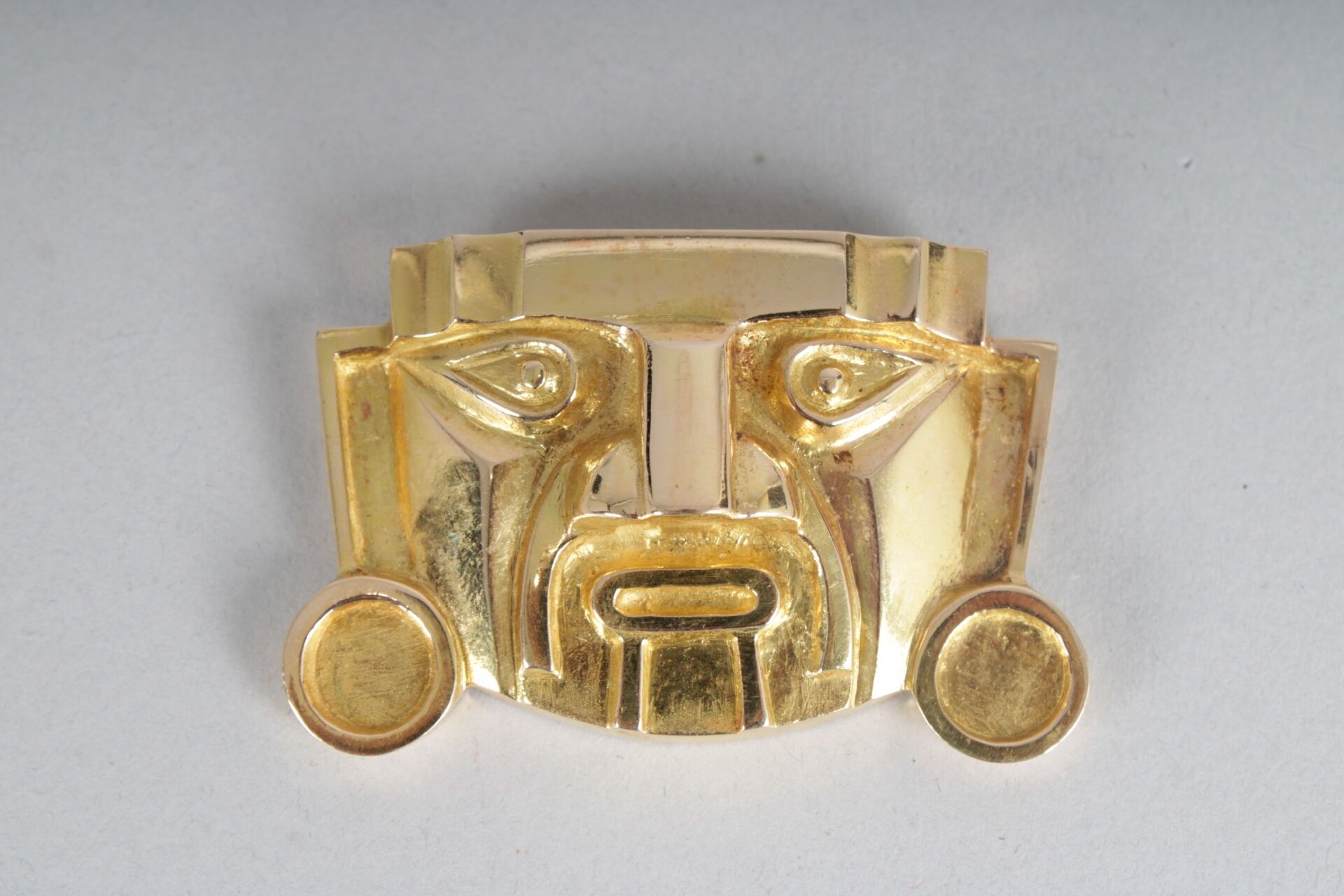 Peruvian gold pendant in the form of a Mayan mask.