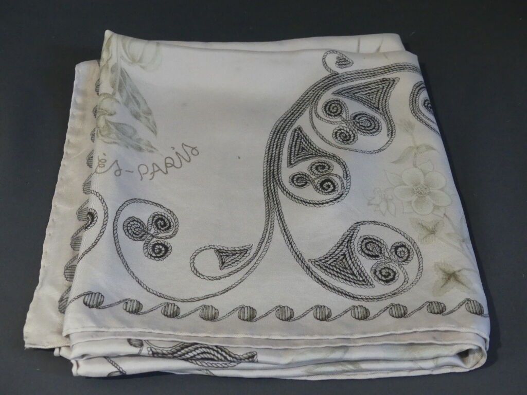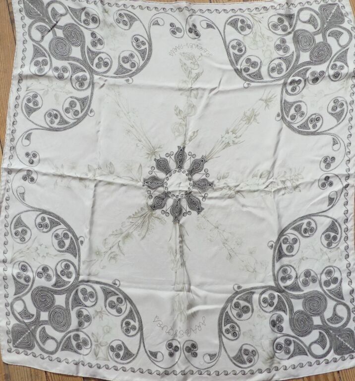 Arabesques" silk square by H.Origny (first edition in 1964, republished in 1980), predominantly grey