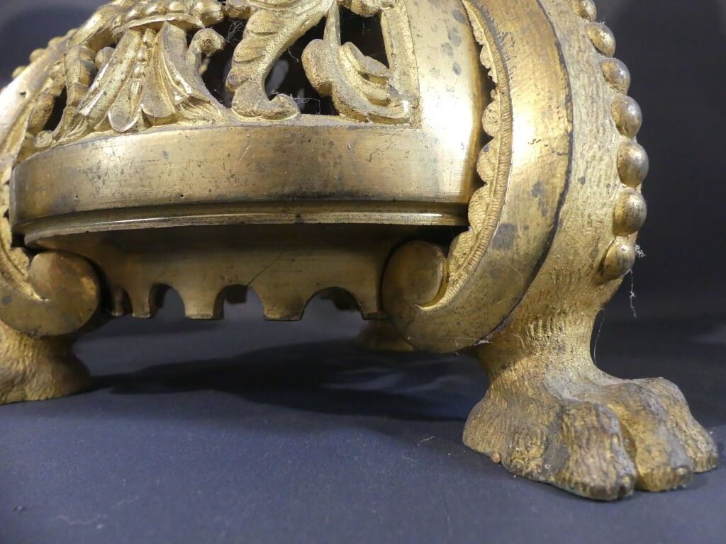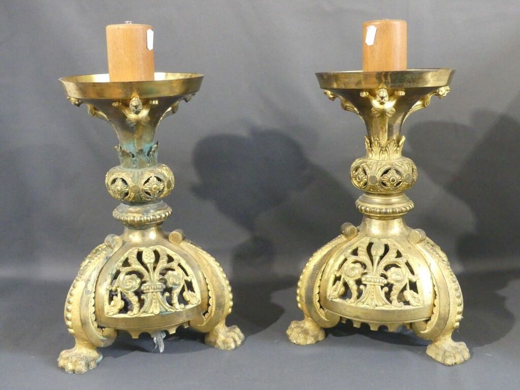 A pair of gilt bronze pedestal tables on claw feet decorated…