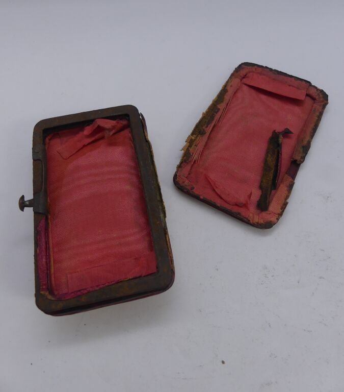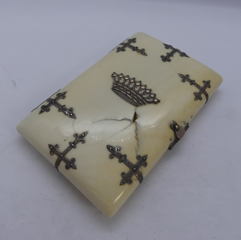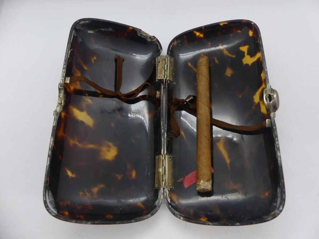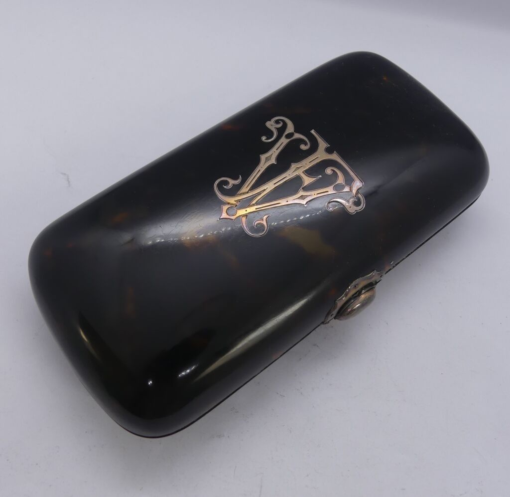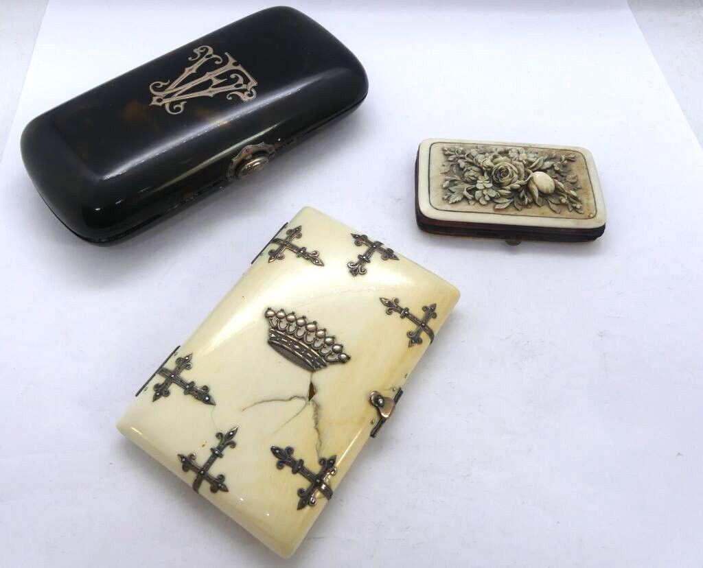 2 cigarette cases, one decorated with a cross and a count's crown and one in tortoiseshell with the number VF, and a toiletry case decorated with flowers.