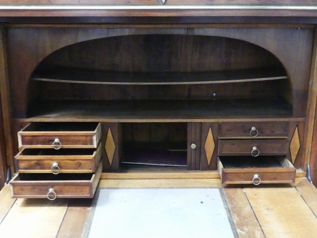 Mahogany veneered straight desk opening with a flap, 4 drawe…
