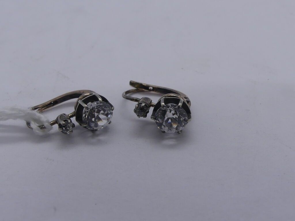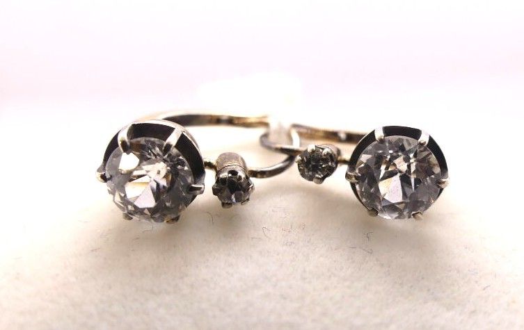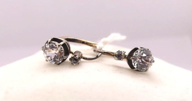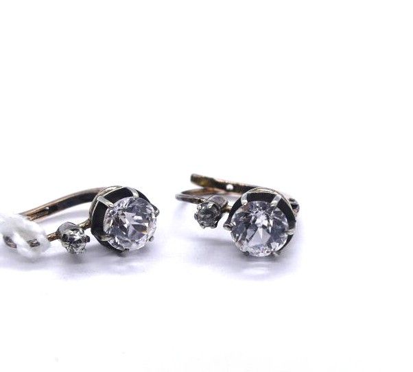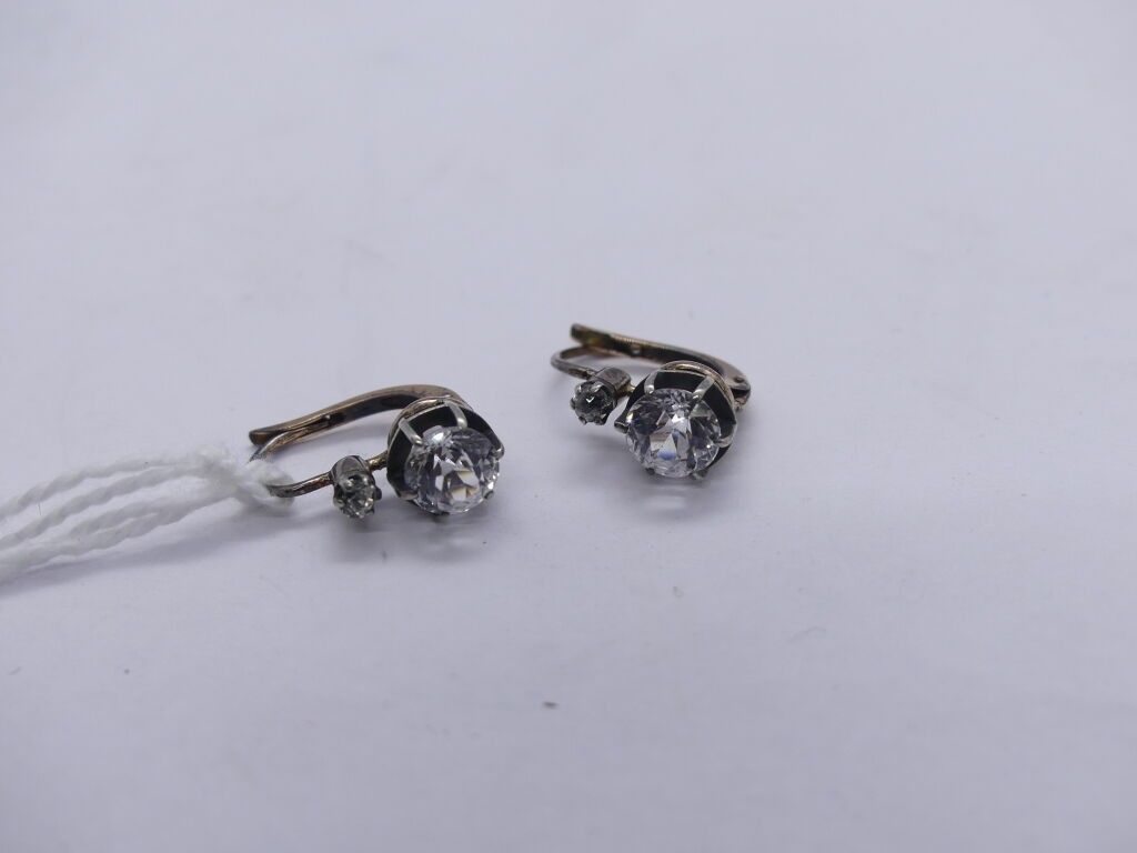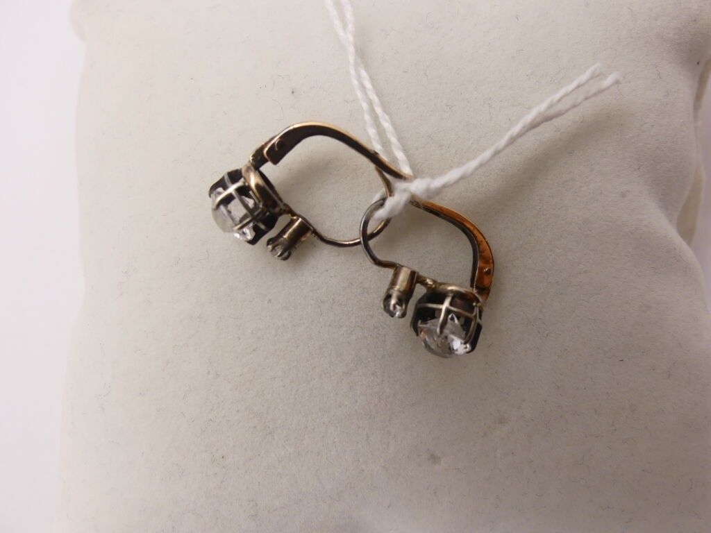 Pair of yellow gold dormeuses set with 2 old-cut diamonds (a…