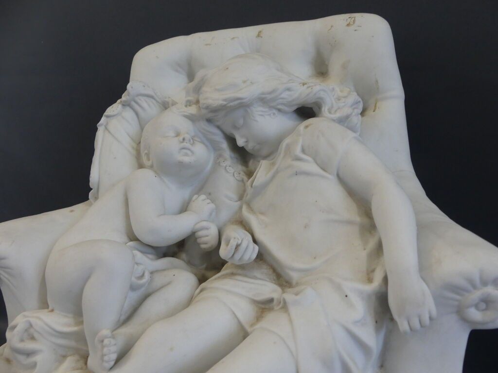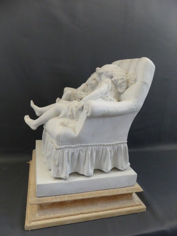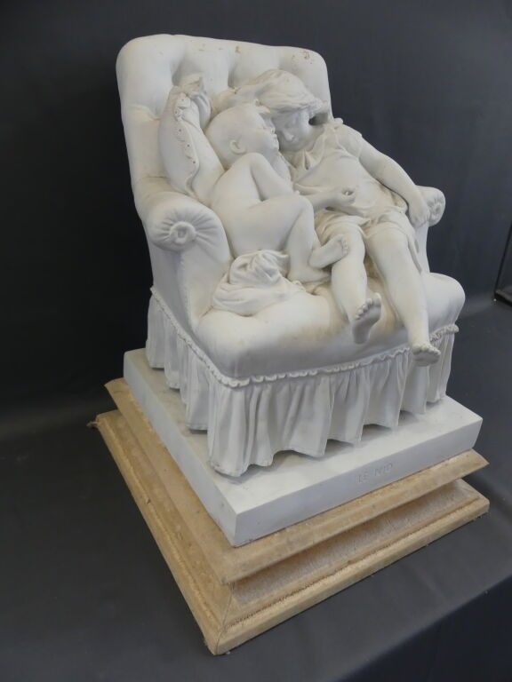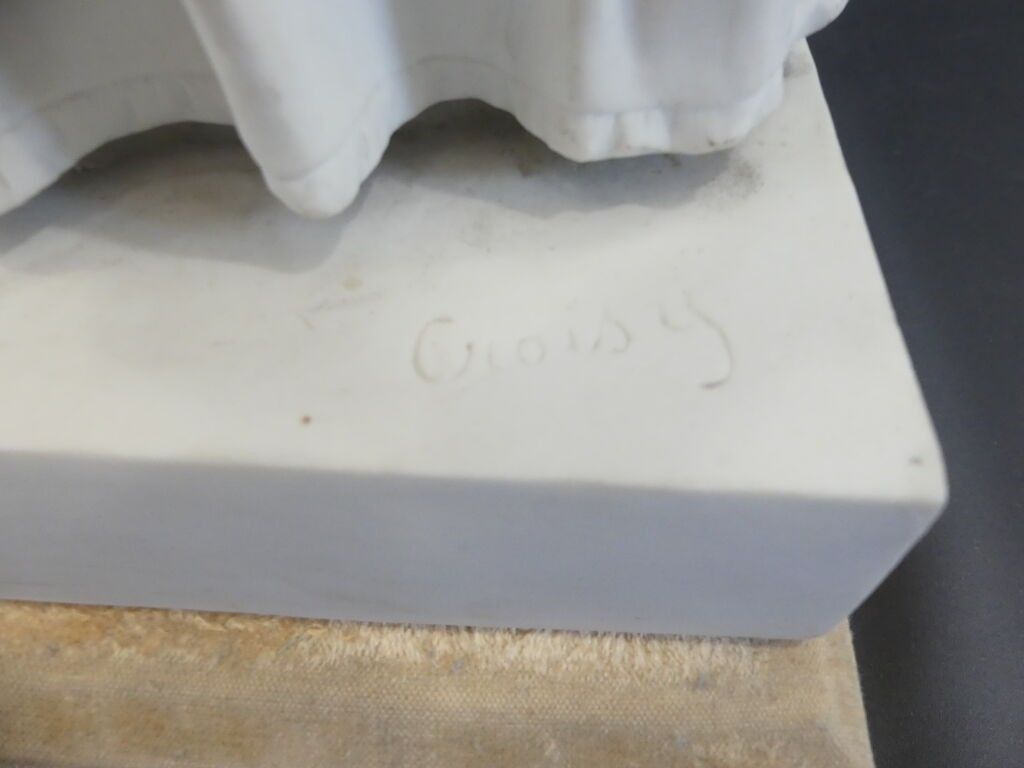 Biscuit proof, signed and titled on the terrace. Wooden base lined with cream velvet.