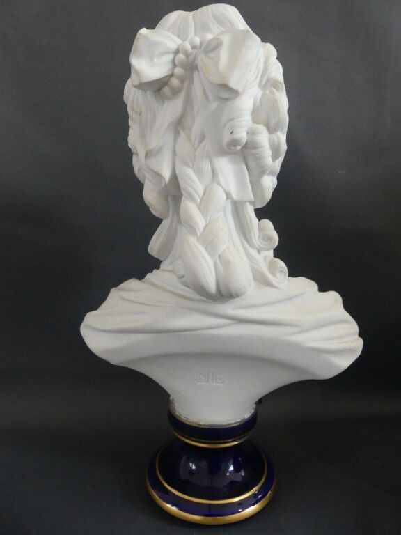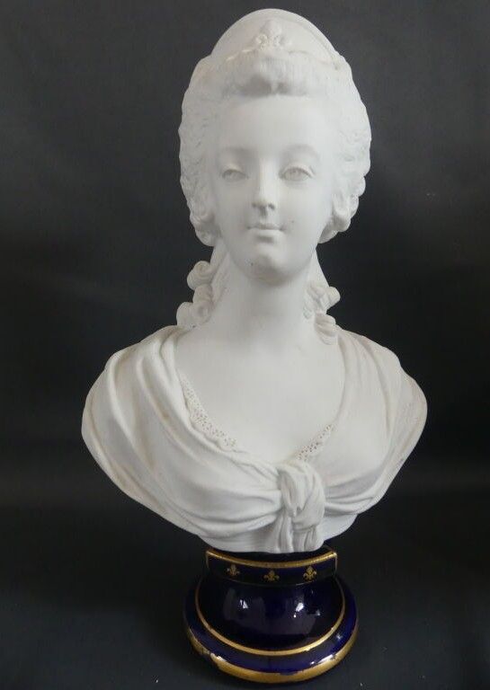 LIMOGES Bust of Marie-Antoinette in porcelain biscuit on a b…