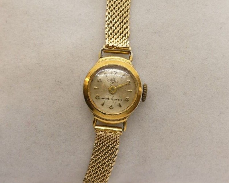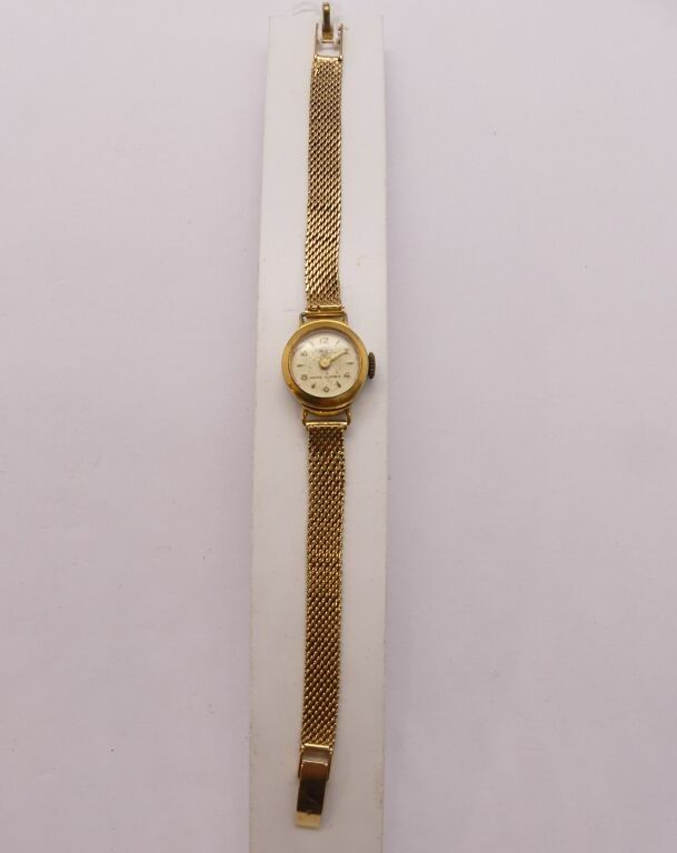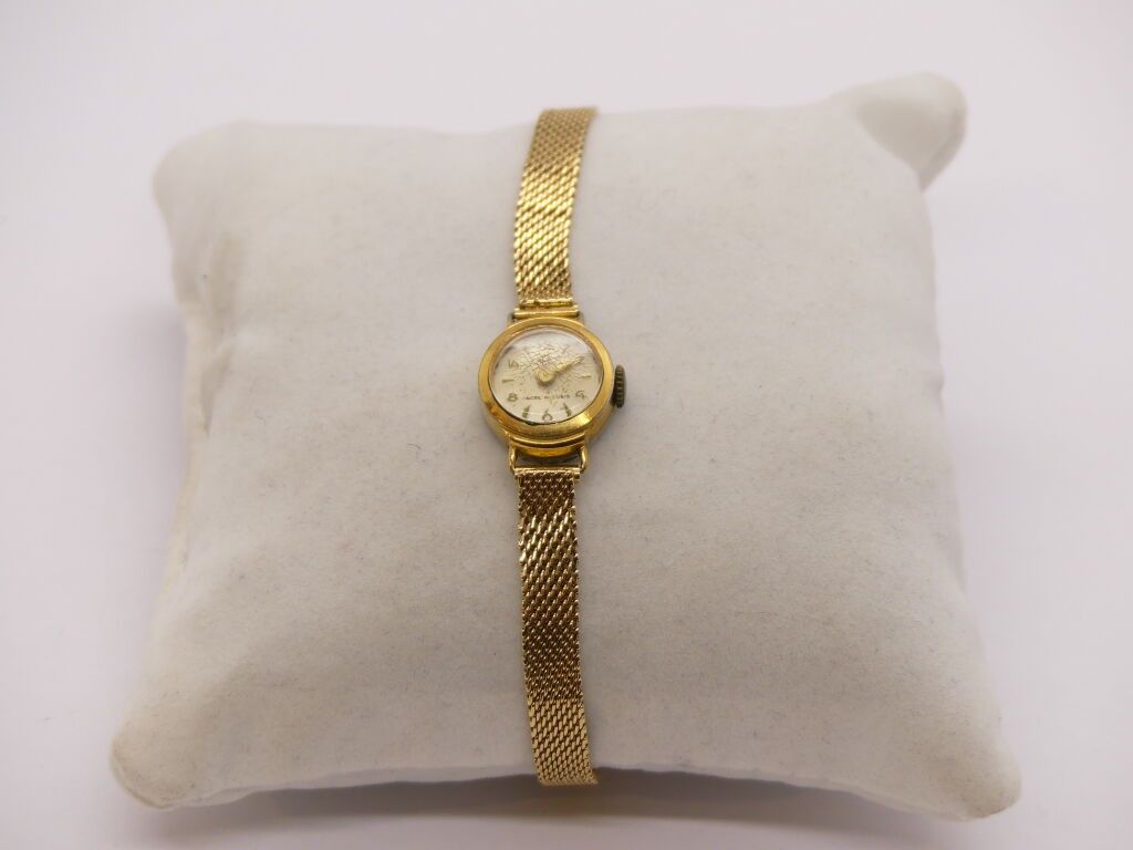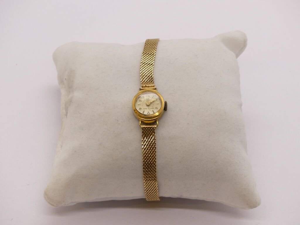 Gold-plated ladies' watch + gold woven link ribbon bracelet