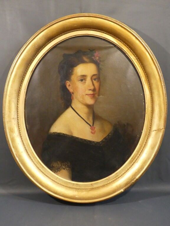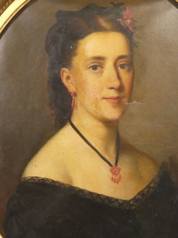 Portrait of a Woman in a Black Dress with a Coral Necklace