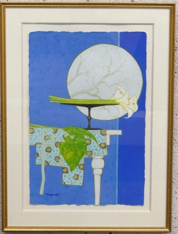 André VIGUD (born 1939) Composition with lilies cut on a tab…