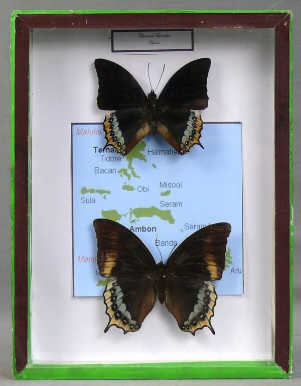 Charaxes euryalus pair - female. A- - Ambon - Indonesia. Antique collection box.
