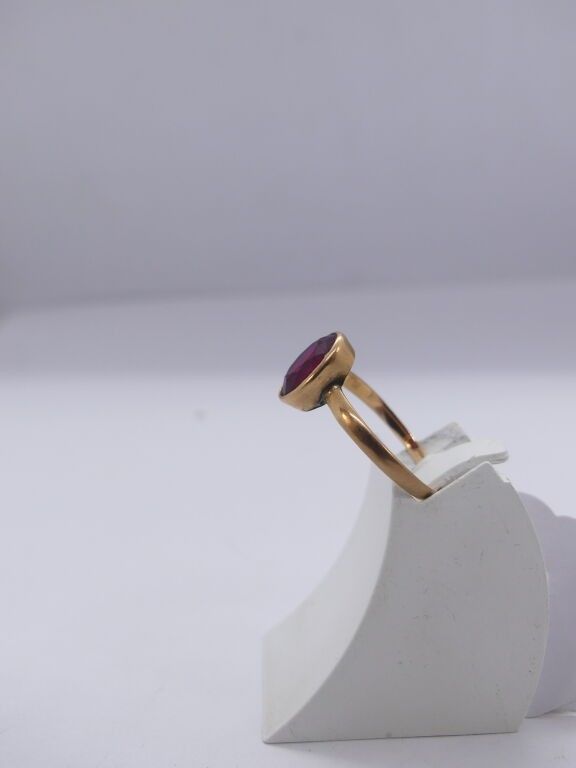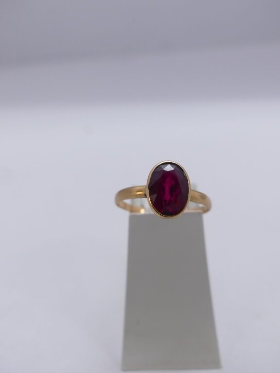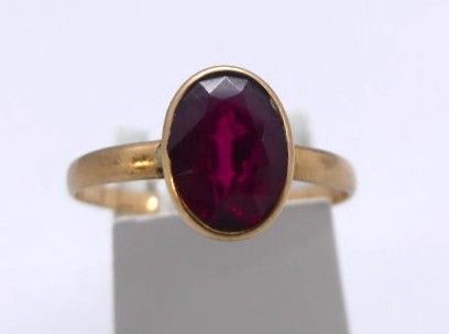 2 yellow gold rings centred on a red rhinestone and a blue s…